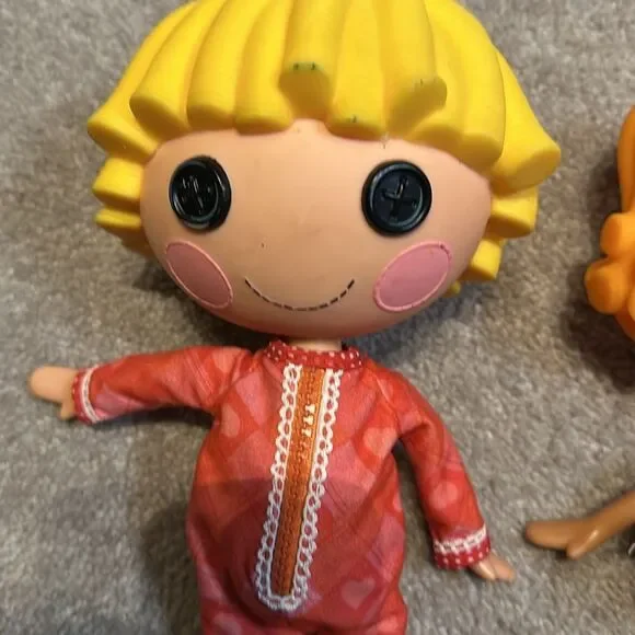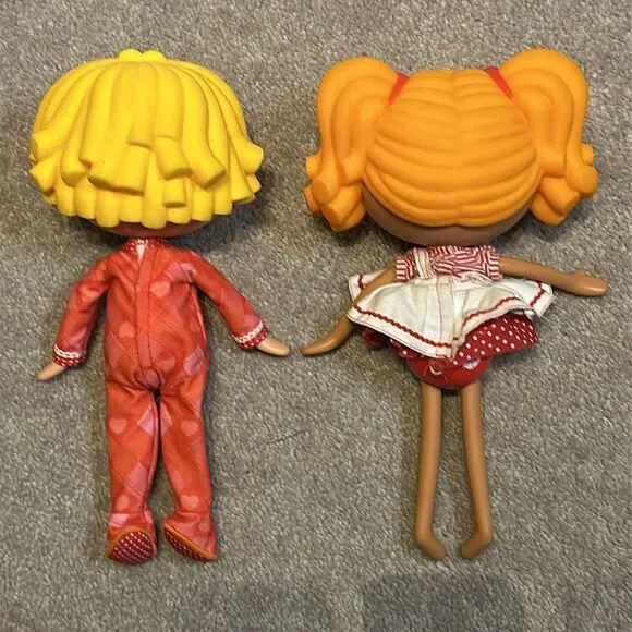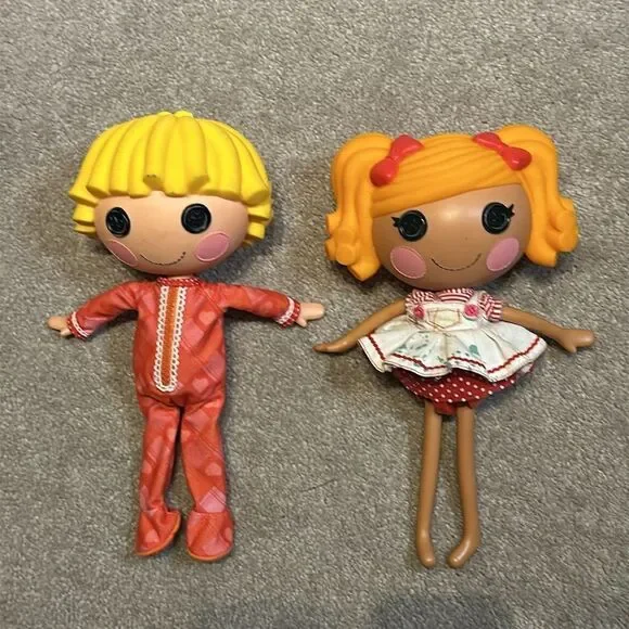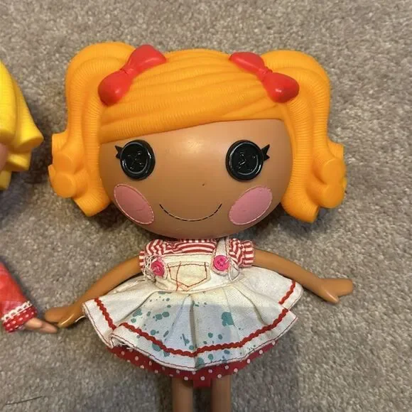 Vintage Lalaloopsy Dolls Set of Two!These licensed reproduction dolls are part of the Lalaloopsy franchise and are designed for playtime for children ages 4 to 12. The dolls have black button eyes, and come without packaging. Each doll weighs under 16 ounces and is a poseable play doll, making them suitable for imaginative play and collecting.Set of two preowned dolls in good conditionMinimal signs of wear Smoke free homeFast Shipping