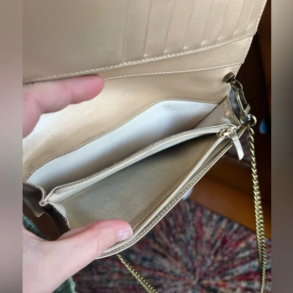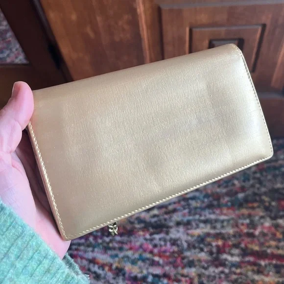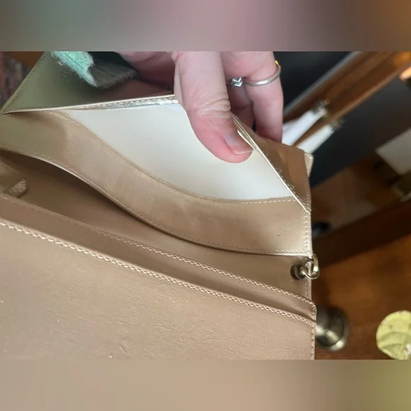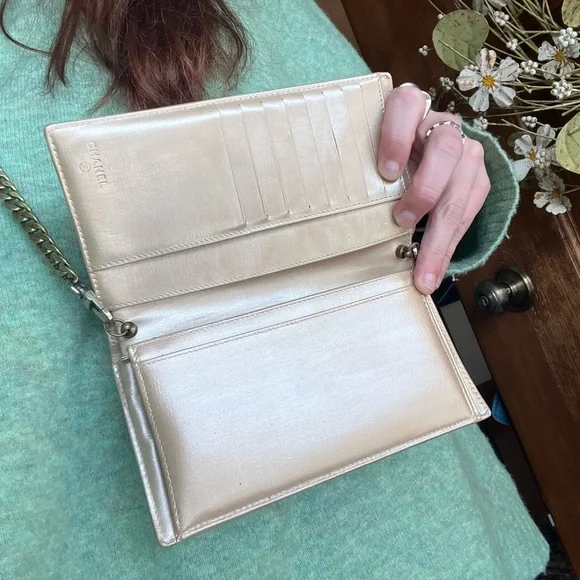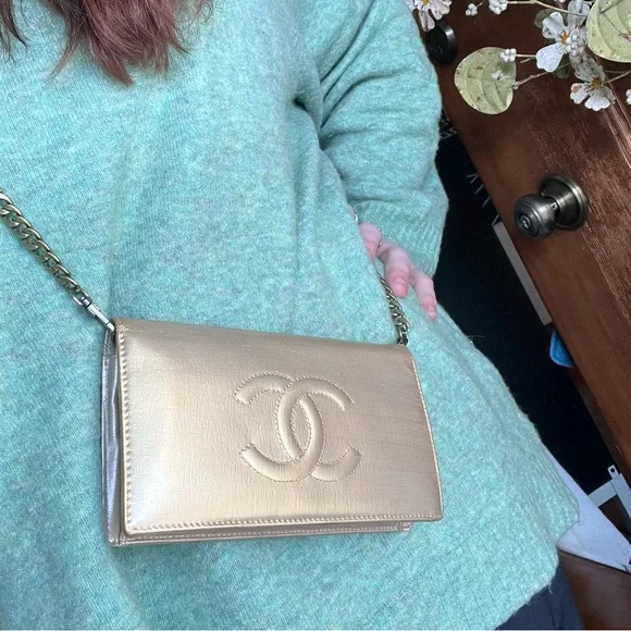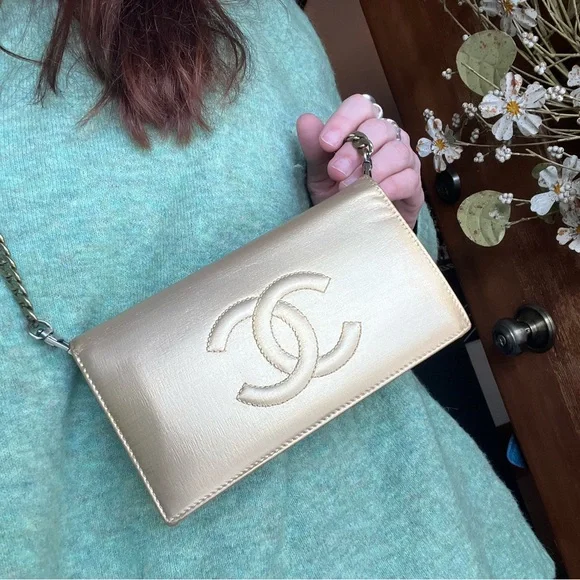 EUC Authentic Chanel Wallet converted to crossbody purseWidth: 7.5 inHeight: 4 inStrap drop : ~22 inAuthentic Chanel wallet - sticker pictured. Leather reconditioned and repainted to a gorgeous soft gold. Unbranded antique gold hardware with detachable strap converts it into a perfect crossbody bag. Inside is quite clean. See pics for confirmation of condition.