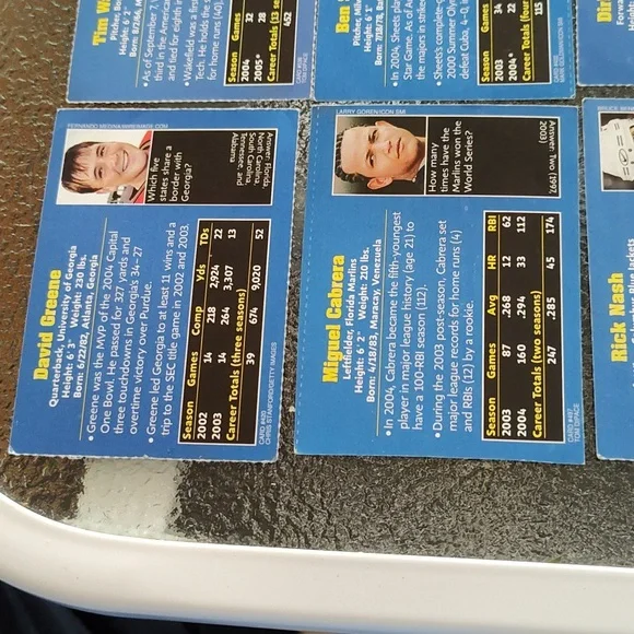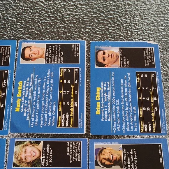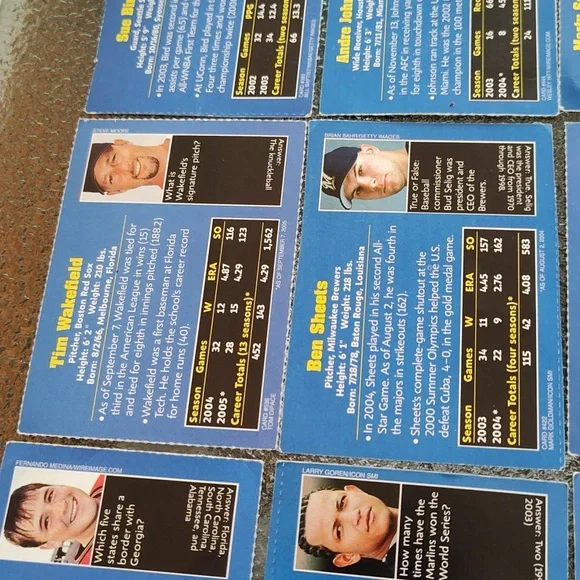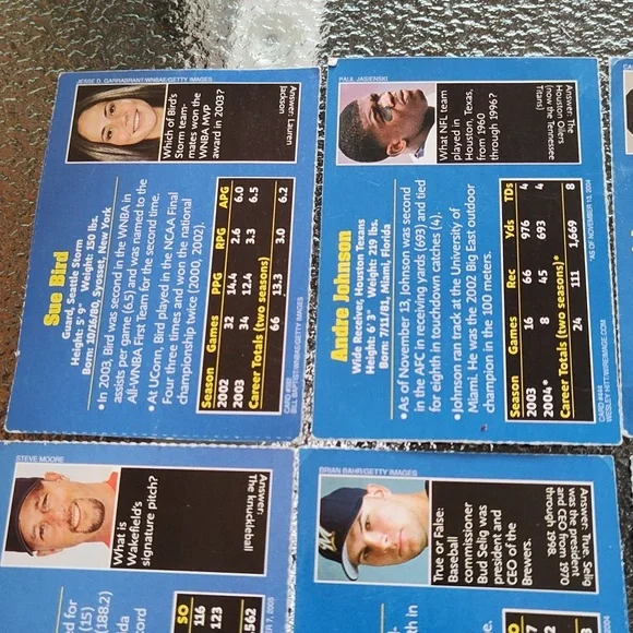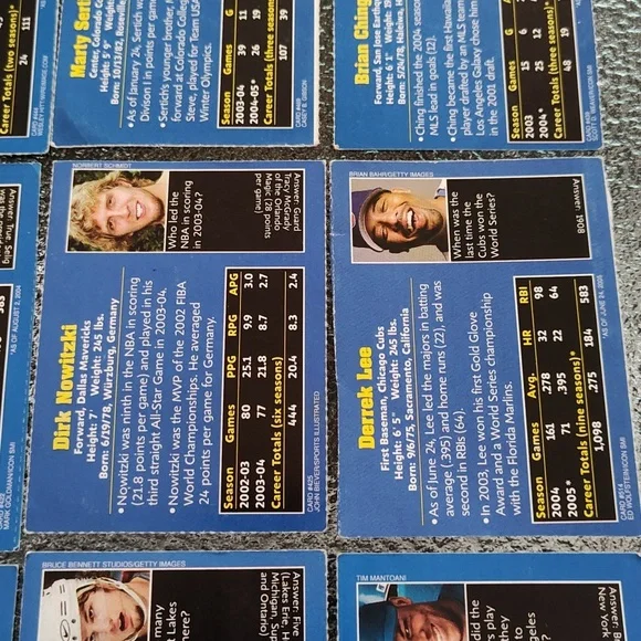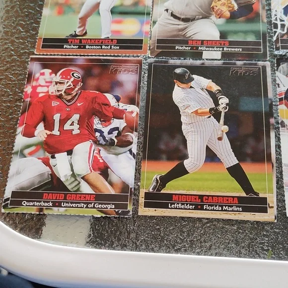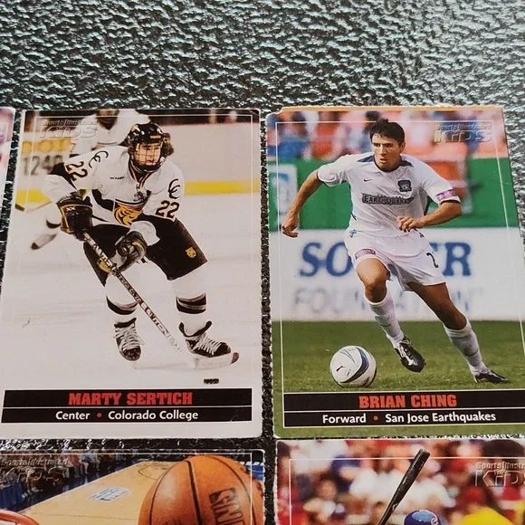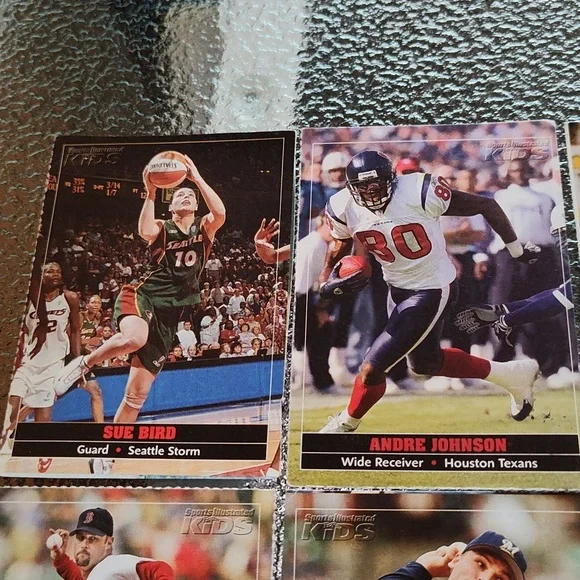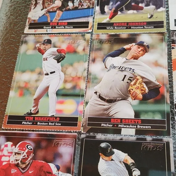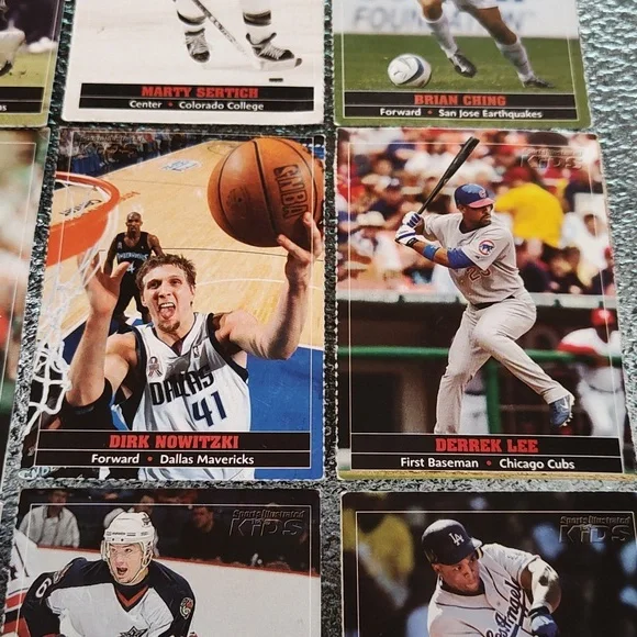 Bag #22- Sue Bird - Basketball - Seattle Storm - WNBA- Andre Johnson - Football - Houston Texans - NFL- Marty Sertich - College Hockey - Colorado College- Brian Ching - Soccer - San Jose Earthquakes - MLS- Tim Wakefield - Baseball - Boston Red Sox - MLB- Ben Sheets - Baseball - Milwaukee Brewers - MLB- Dirk Nowitzki - Basketball - Dallas Mavericks - NBA- Derrek Lee - Baseball - Chicago Cubs - MLB- David Greene - College Football - University of Georgia- Miguel Cabrera - Baseball - Florida Marlins - MLB- Rick Nash - Hockey - Columbus Blue Jackets - NHL- Adrian Beltre - Baseball - Los Angeles DodgersSports Illustrated Kids Trading Cards - Set of 12 - GUCA dozen trading cards in good, used condition!Please check photos carefully before purchasing. Athletes listed above and photographed are the cards you will be receiving. Packs are for sale as is. These are great for the collector or sports enthusiast in your life! *Ships from NY! Pet-free, smoke-free home! Will consider reasonable offers! *Comment with any questions! Please ask all questions prior to purchasing. ALL SALES ARE FINAL. Please read this listing carefully and check the photos. I want you to love your purchase! 3/24Drawer #3