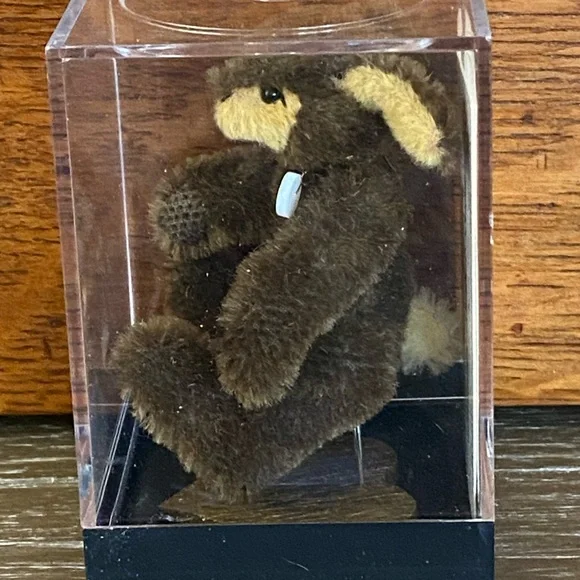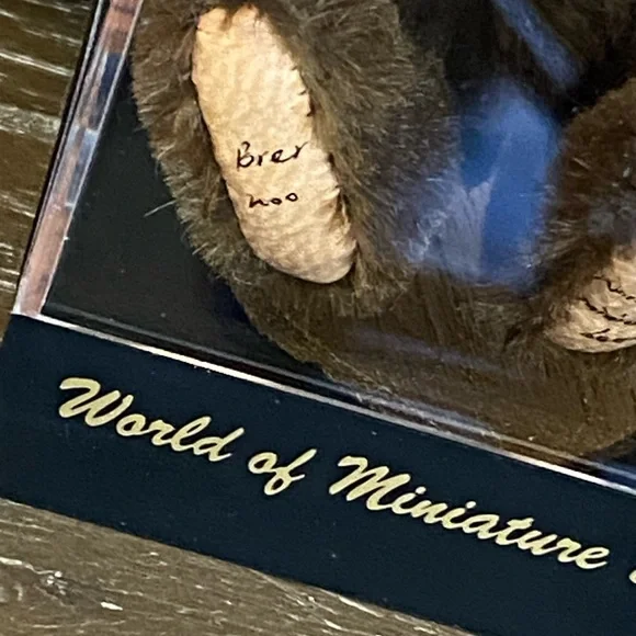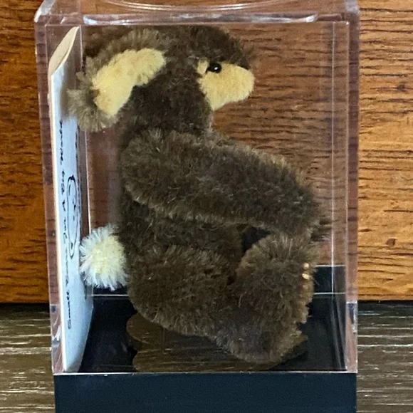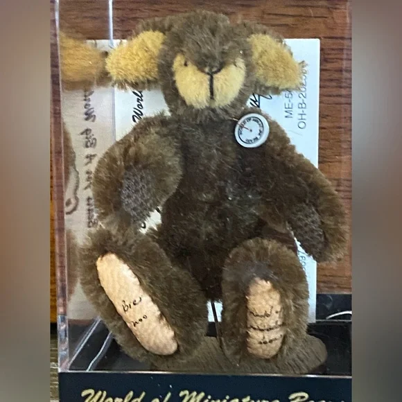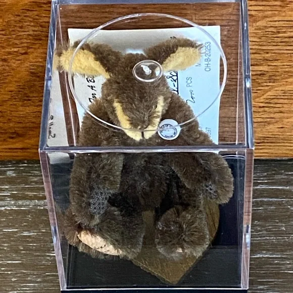Sweet miniature mohair bunny. Perfect for Easter. Limited edition of 2,000. Comes in an acrylic case. Sits on a brown heart stand. New with tags. Excellent brand new condition. His name is Brer. Part of the World of Miniature Bears Collection. Artist is Eleanore Unkel-Schaufelin. Case is 3 1/4” x 2 1/4”.