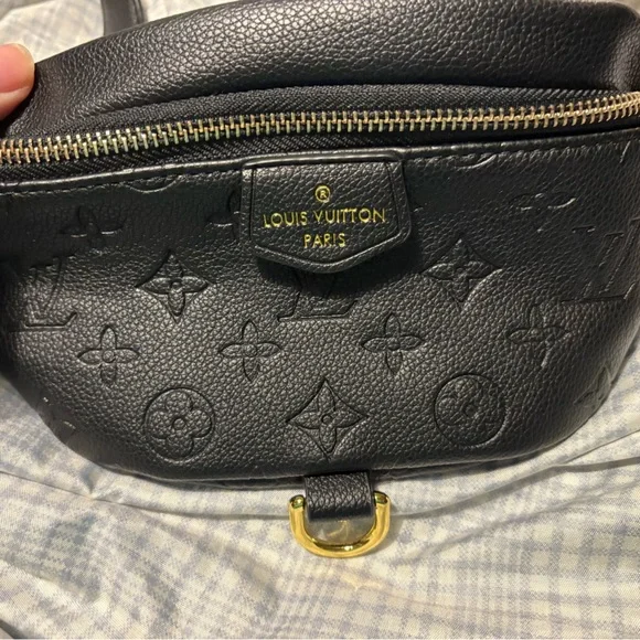This elegant Louis Vuitton crossbody bag in black showcases the iconic embossed monogram pattern, exuding luxury and sophistication. The gold-tone hardware adds a touch of opulence, while the adjustable strap ensures comfort and versatility. Crafted with premium materials, this bag is a timeless accessory for any occasion.