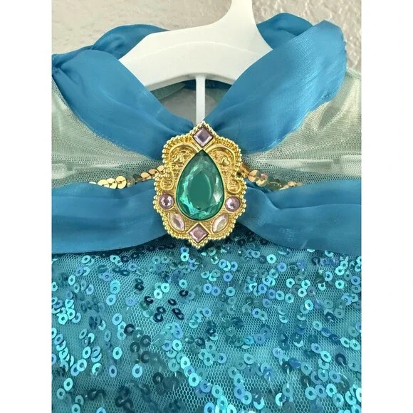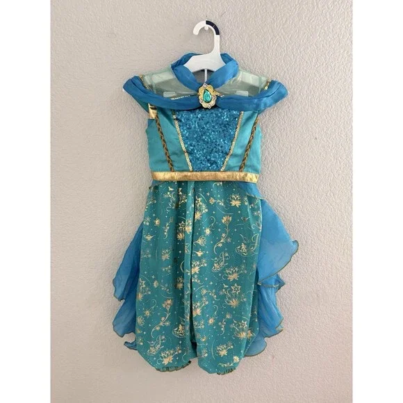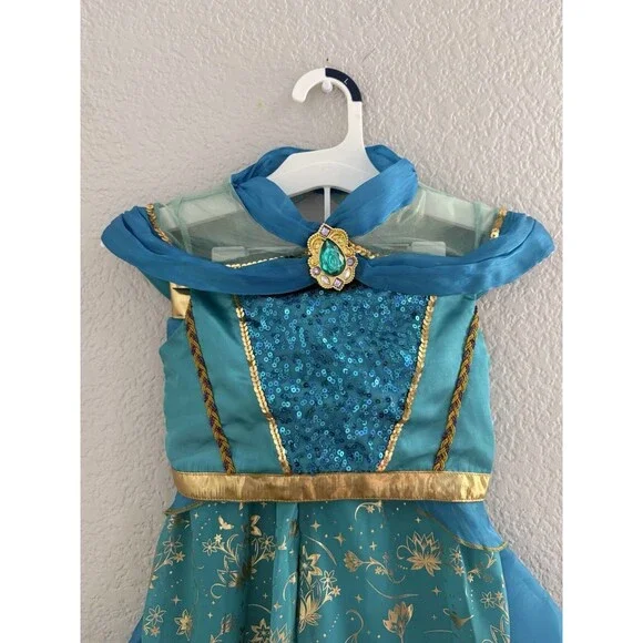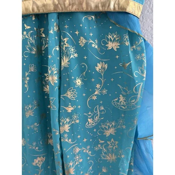 Your little one can embrace the magic of Disney with this delightful Jasmine deluxe costume, perfect for dress-up parties or imaginative play. The dress features intricate detailing and a vibrant multi-color palette, capturing the enchanting essence of the beloved princess. Designed for girls size 5-6, it promises a comfortable fit for all-day adventures.