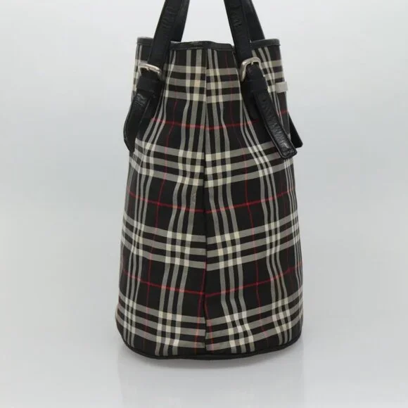 Burberrys Nova Check Blue Label Tote Bag Nylon Black Silver Auth bs22959ITEM DESCRIPTIONBRANDBurberrysColorBlack/SilverMaterialNylonSize(cm)W27cm x H30cm x D20cm(Approx)Handle Drop:20 - 25cm(Approx)Size(Inch)W10.6 x H11.8 x D7.9inch(Approx)Handle Drop:7.9 - 9.8inch(Approx)StyleTote BagAccessoryThere is no item box and dust bag. We will send only the item which is put in the photo.Serial No.-RankCConditionOutsideSurface:Losing its shape, rubbing, stainLeather:rubbingHandle:rubbing, out of shapeMetal fittings:scratches, painting offInsiderubbingPocketrubbingCornerrubbingOdorThere is keeping(storage) smell.RANKRANKItems with the grading S or SA are as close to new as you can get. Usually they are either new old stock or have only been used a couple of times. You will find it very difficult to see any issues with these items.Items with the grading A are in beautiful condition. They have been used but you will find it tough to spot any marks. However as they have been used there might be a couple of small marks.Items with the grading AB are in excellent condition. They have been used but you will find it tough to spot many marks. However as they have been used there might be a couple of marks.Items with the grading B are in very clean condition. There are small signs that the item has been used previously but in general they are very tidy.Items with the grading BC are in better than average condition. There are signs that the