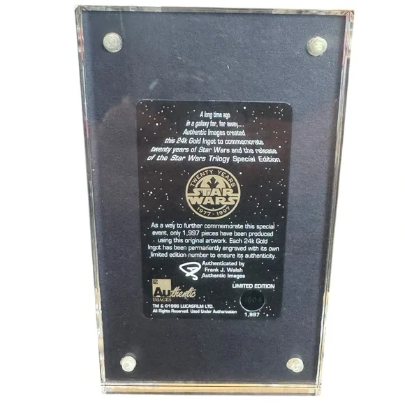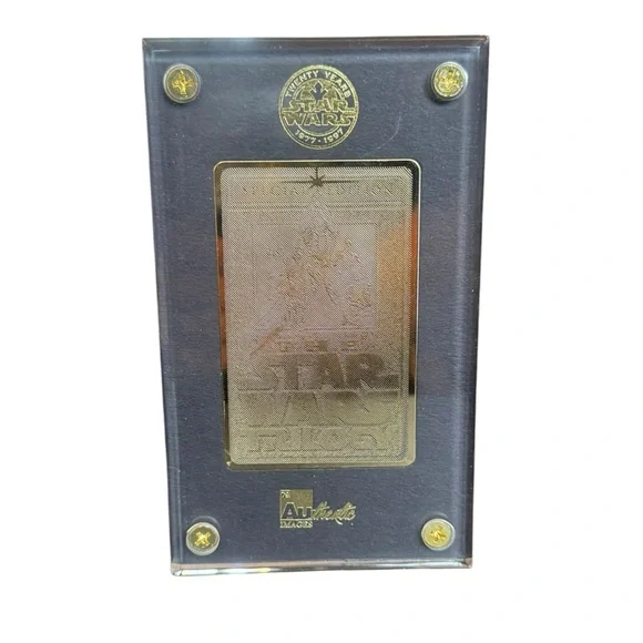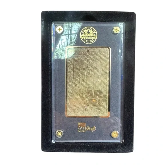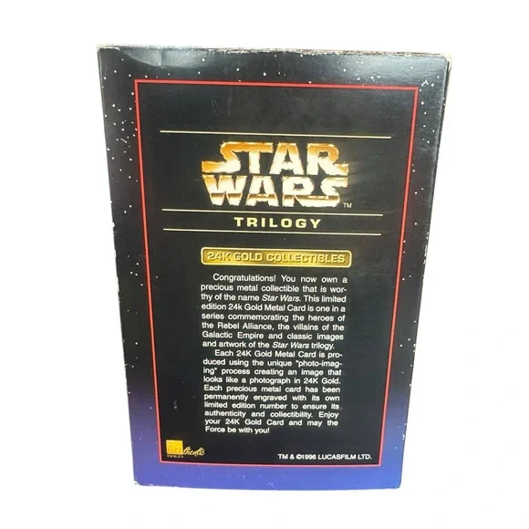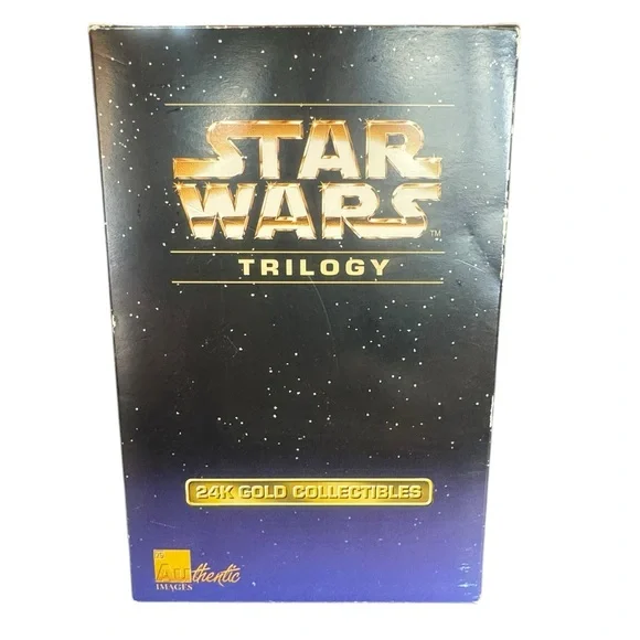 Special edition Star Wars Trilogy 24 karat gold plaque. Features intricate design and authentic branding. Box is approximately 4 1/2” wide and 7” tall. Excellent condition! Box was only opened to take pictures. Your satisfaction is very important to me, please let me know if you have any questions before purchasing. Thank you for visiting my listing and Happy Shopping!