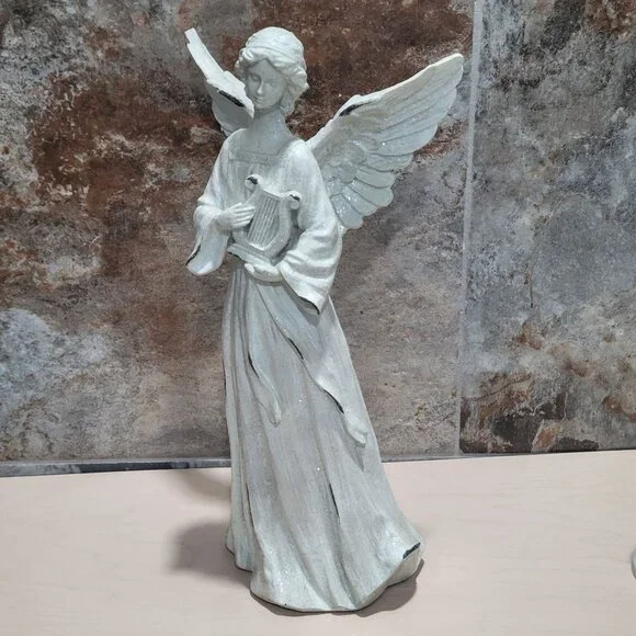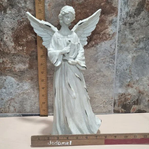Guardian Angel Holding Lyre Harp 14 inch Tall Winged Statue Home DecorMeasurement: 7.5 x 5 x 14.25 inWeight: 1 lb 13.1 ozYour item may come in a re-used box with some labeling from other companies In my effort to recycle and re-use. Thank you for supporting my small business.Features:• FigurineCondition: Pre-Owned Good