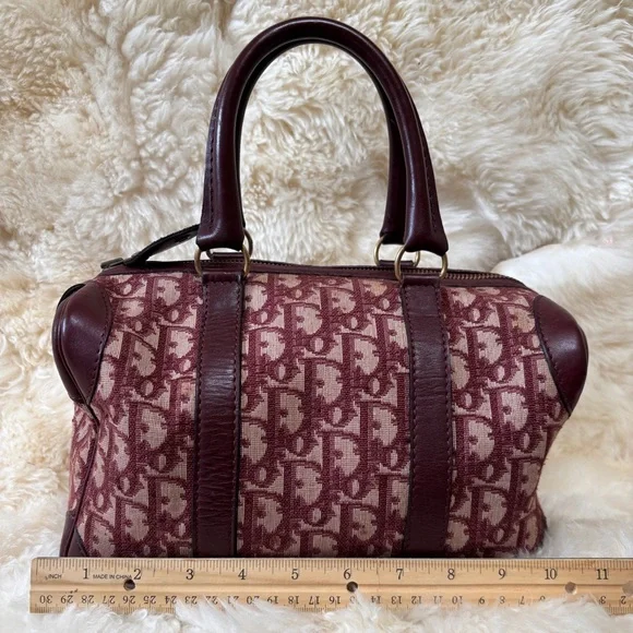 Elevate your style with this elegant Dior women's bag. Featuring a rich burgundy color and iconic pattern, this bag is perfect for any occasion. This bag is the epitome of imperishable chic. Combining modern and classic elements, Dior makes a bold statement with its delicate yet edgy style. The signature and intricate detailing hold up through the years while giving you the elegance that appears to be as seamless today as it did years ago.Even with a pre-loved Dior bag, you can rest assured it is as impeccable as the latest collection. Surprisingly, investing in the pre-owned Dior also imparts a sense of heritage. With such a creation, you’ll be reminded of the history of haute couture fashion that has led up until today.Invest in timeless luxury that's kinder to your wallet. It’s not just a bag it’s THEE bag. Color: Burgundy/ Ecru MonogramApproximately size: W 12’ in x H 7. 5’ inHardware: Silver tone Manufacture: FranceInclusions: COA from third party authenticator 100% authentic, buy with confidence
