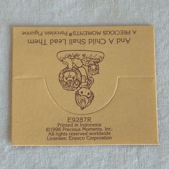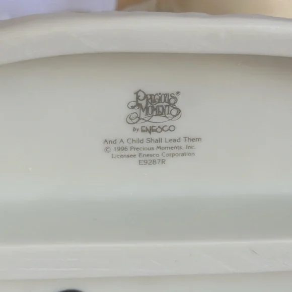 Enesco Precious Moments “And a Small Child Shall Lead Them” porcelain figurine. Signed. Vintage 1996. Like new in box condition. Measures about 5.5” tall, 4.5” wide, and 3.5” deep. Adorable for a gift or to add to your collection!Inventory: BXB