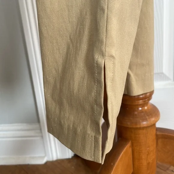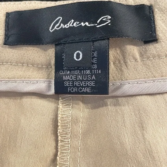 Vintage Y2K Arden b. beige Capri dress pantsThese beige crop pants subtly sparkle with glitter Flat front, they zipper up with a hook and eye & button closure and feature side vents at the anklesMade of 77% viscose, 21% polyamide and 2% elasthaneStyle number 501C – 103RN number 78749Women’s size 0Measure approximately lying flatWaist 13 1/2 inchesRise 9 1/8 inchesInseam 24 inchesLength 33 inchesLeg opening 7 1/2 inchesThese measurements are subjective made in the USANew without tagsSmoke-free business