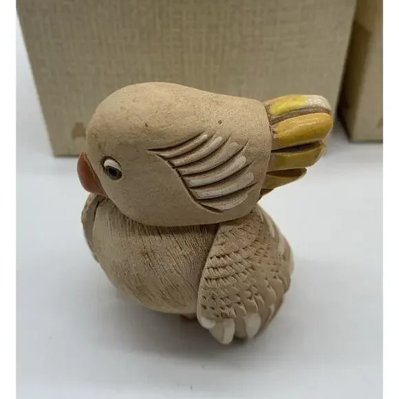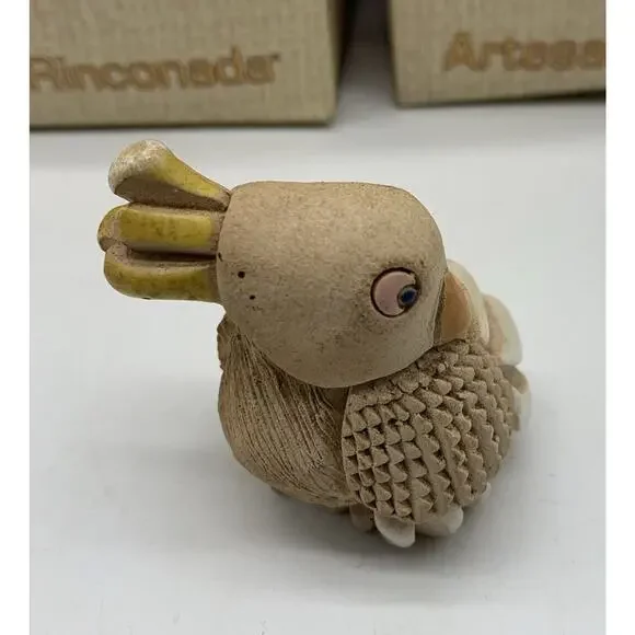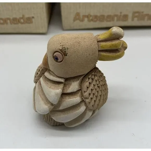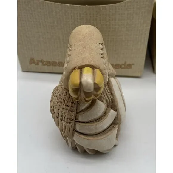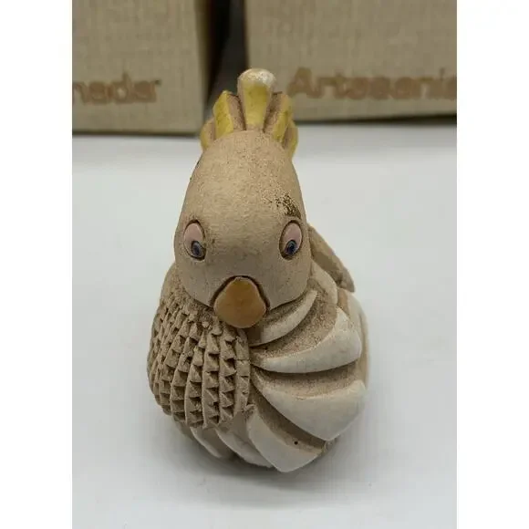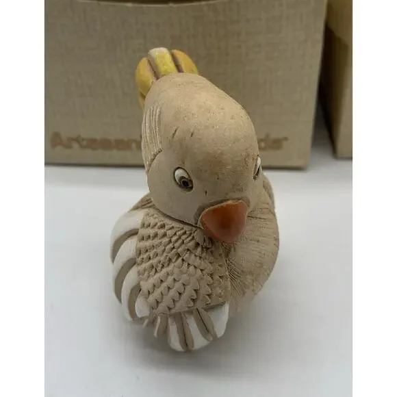 This exquisitely crafted Artesania Rinconada Cockatoo figurine is a must-have for collectors and bird enthusiasts alike. Handmade with clay and ceramic, this multicolored figurine features intricate carvings and a matte finish. The figurine depicts an adult and baby cockatoo in a playful pose, making it a great addition to any room in your home.This vintage figurine is part of the Artesania Rinconada Animal Series and comes in its original packaging. Perfect for all occasions, this small-sized figurine stands at 3 inches tall and is an original piece from the 1980s. Don't miss out on the chance to add this beautiful piece to your collection!