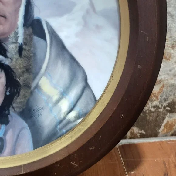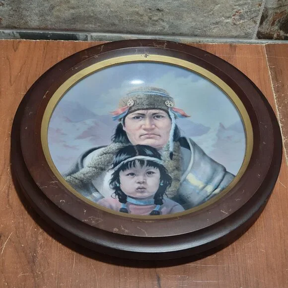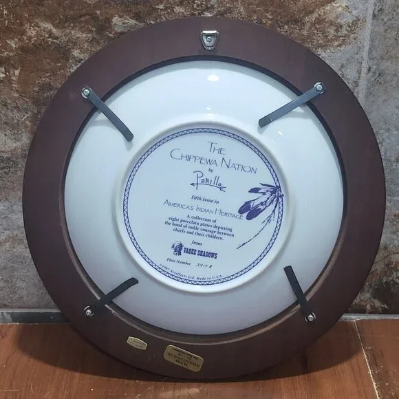 Vague Shadows The Chippewa Nation Decorative Collector Plate by Perillo Fifth Issue Americas Indian HeritageVintage from the 1980sMeasurement: 10.75 x 1.75 x 10.75 inWeight: 1 lb 12 ozYour item may come in a re-used box with some labeling from other companies In my effort to recycle and re-use. Thank you for supporting my small business.Features:• Decorative CollectorPlate• TaiwanCondition: Pre-Owned GoodSuperficial scratches on wood frame, see photos 8, 9, 10.