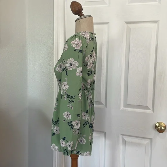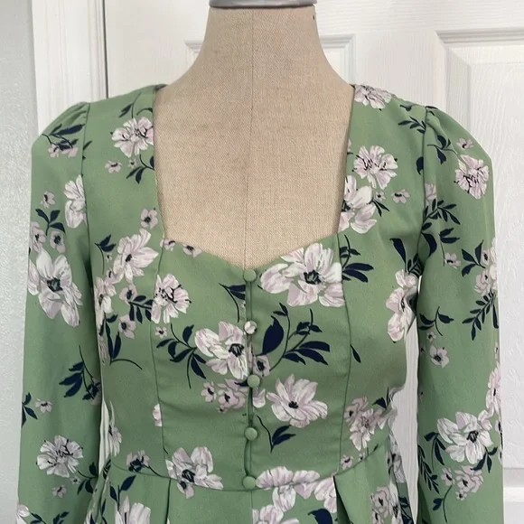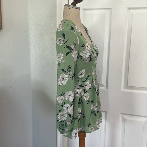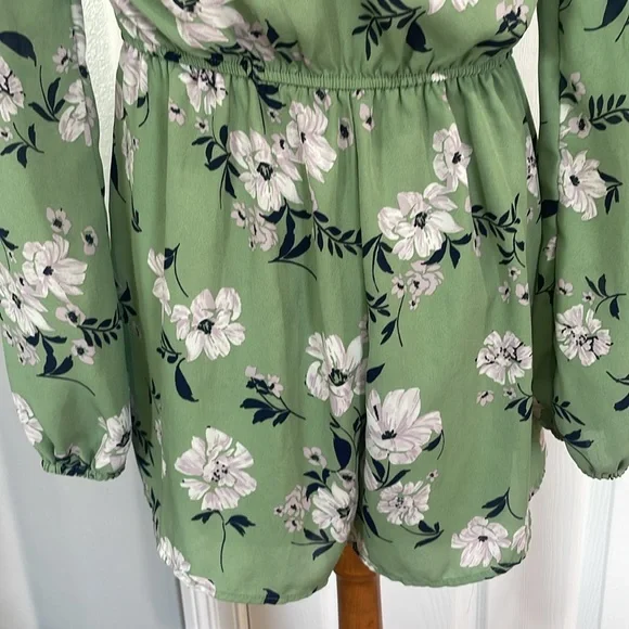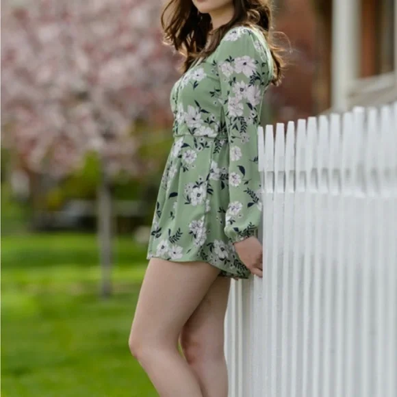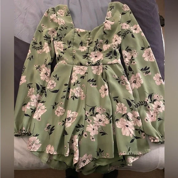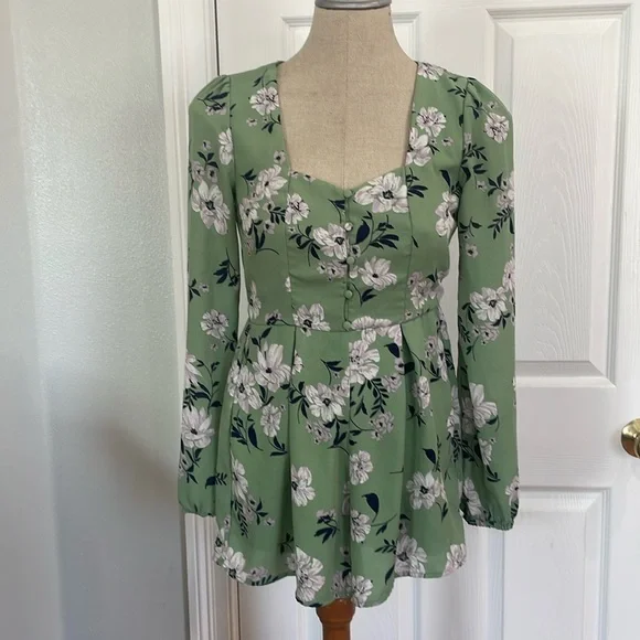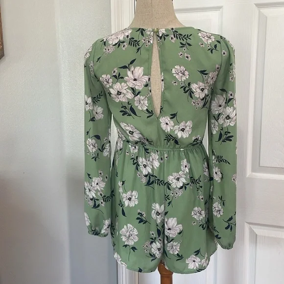 Francesca‘s Mi Ami green floral long sleeve romper with keyhole button closure at backThis beautiful Francesca's romper is a must-have for any fashion-forward woman's wardrobe. The green floral pattern is perfect for any season, and the long sleeves and sweetheart neckline add a touch of elegance. The keyhole back closure detail is a unique feature that sets this romper apart from othersQuality made of 100% polyester.Easy care machine washableRN number 106289It features an elastic waste for stretch and is fully lined. This romper is perfect for any occasion, whether it is a casual day out or a night on the town. The quality and brand speak for themselves, making it a great addition to any collection.Women’s size XXSMeasures approximately lying flatArmpit to armpit 18 1/2 inchesLength 27 1/4 inchesNew without tags, I purchased this for my daughter, but it didn’t fit New to ? Sign up using our referral code wrapping up for $10 Georgia first purchaseSmoke-free businessGet this Francesca’s Mi Ami long sleeve green floral romper
