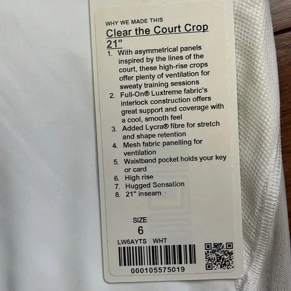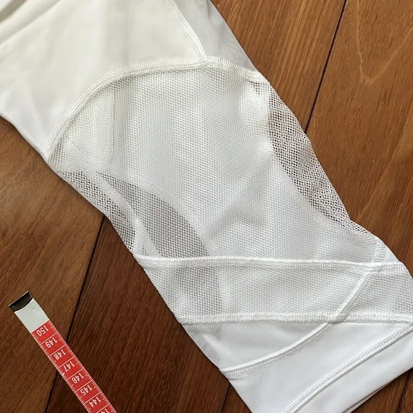 Brand new, with tags, never worn, no flaws. See tag for material makeup. Very stretchy with paneling on side and bottom, crop style. Size 6, see pics for measurements and length.Workout, Pilates, yoga, athleisure, activewear, weight training, CrossFit, summer, Barbie, barre, ballet, soul cycle, spinning, running, track, sports, sporty