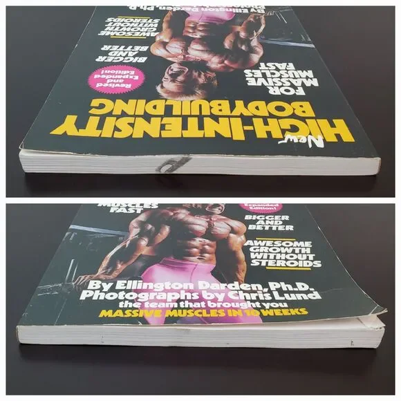 High-Intensity Bodybuilding: For Massive Muscles Fast, by Ellington Darden Paperback----Condition: Some creasing to corners of cover and pages. Some edge wear and corner wear, rub wear from handling along spine. Pages have yellowed some from age. Some discoloration marks along edges of pages. See photos. Discoloration mark inside front cover. Stale older book smell from disuse.Let me know if you have any questions. I ship same or next business day.
