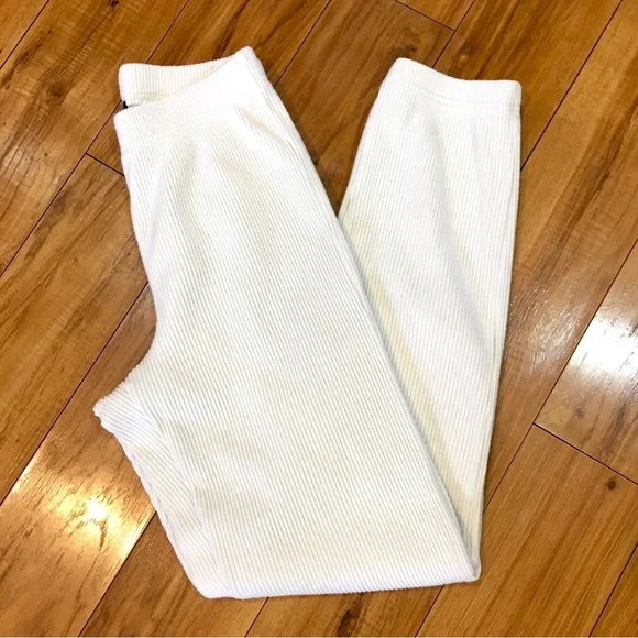 Gap Body ribbed knit cotton thick pants lounge Athlesiure preppy trending small Like new condition - ivory white - thick cottonLuxury soft ribbed knit - pull on style Tag size small - 29.5” inseam - banded ankle Approx 38” total length -24” waist before stretch - up to 34” Cleaning out our personal closets and farmhouse home decor - tons listed now !!Follow me for new listingsAbout me page for more infoshoechic30 @shoechic30 #poshmark