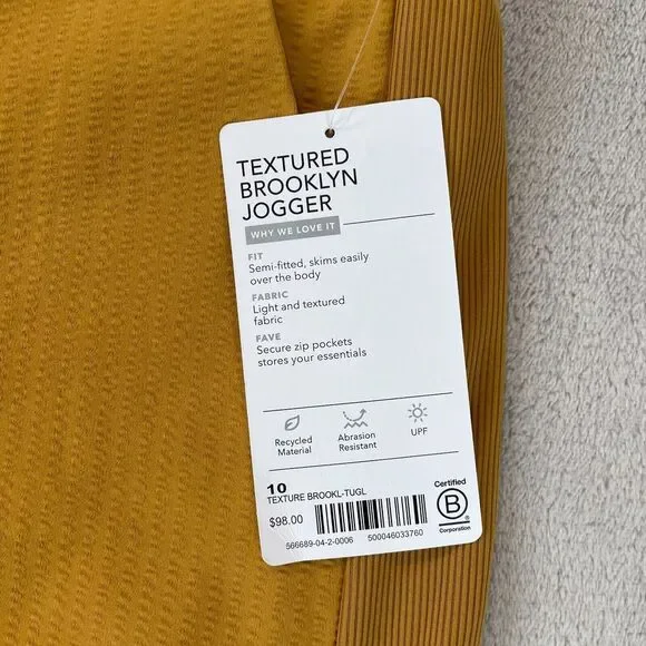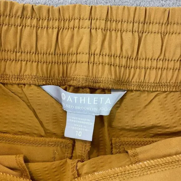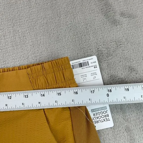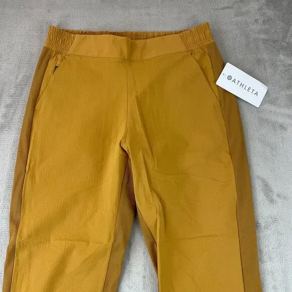 ATHLETA Jogger Women 10 Tuscan Gold Textured Brooklyn Semi Fitted UPF NWT $98Please view pictures for measurements. Please view and zoom in on all of the pictures as they are part of the description.(SEE MEASUREMENTS TO ASSURE PROPER FIT)If you need a different measurements please message us and we will be happy to get them for you.We have a huge selection of New and Preowned items and we list new items daily, so please click the "SAVE SELLER" button so you can be updated with our new listed items. THANKS FOR THE SUPPORT!I offer no-hassle 30 Day returns if the item does not fit or if you just do not like it. I ship items out every day Monday-Saturday, so expect a quick delivery. Thank you!