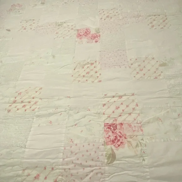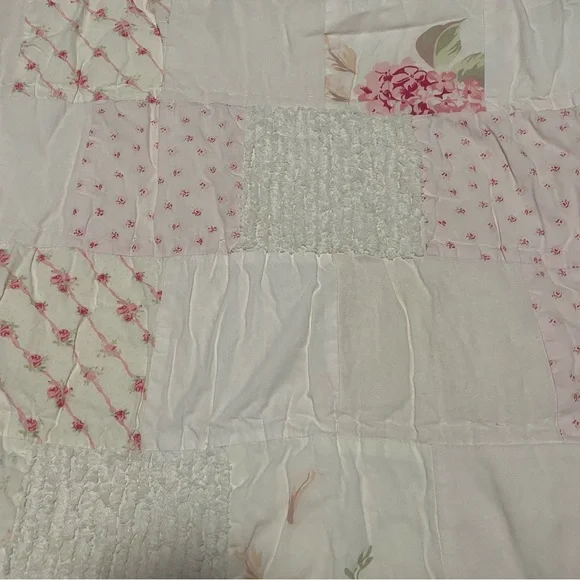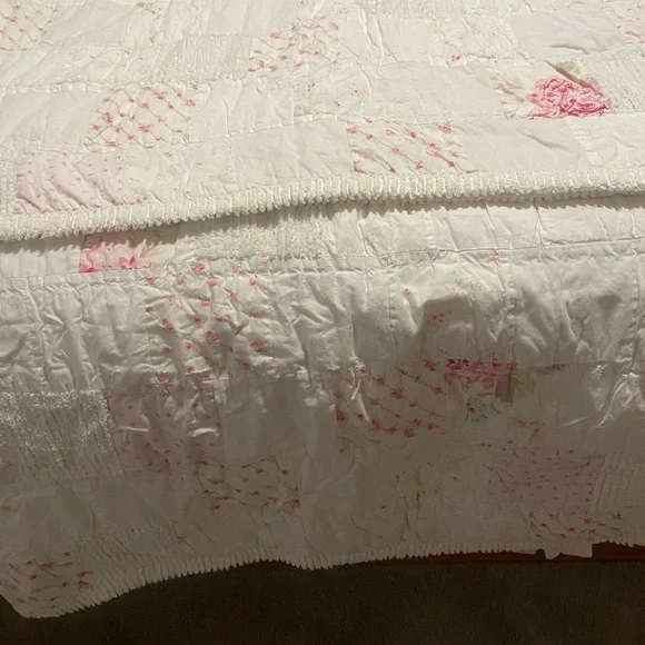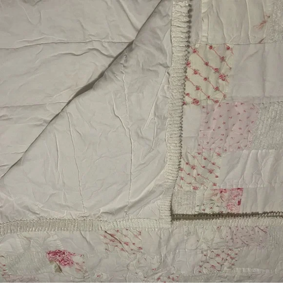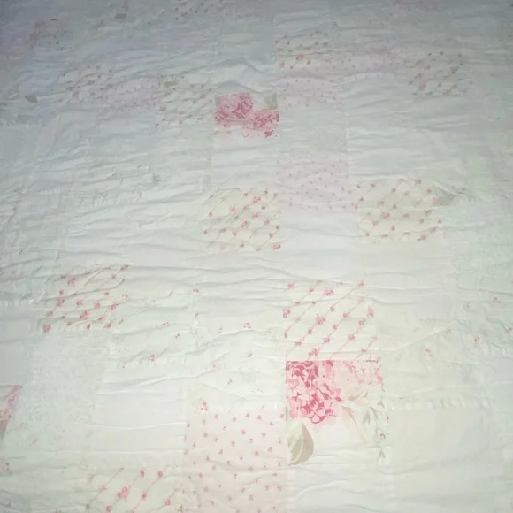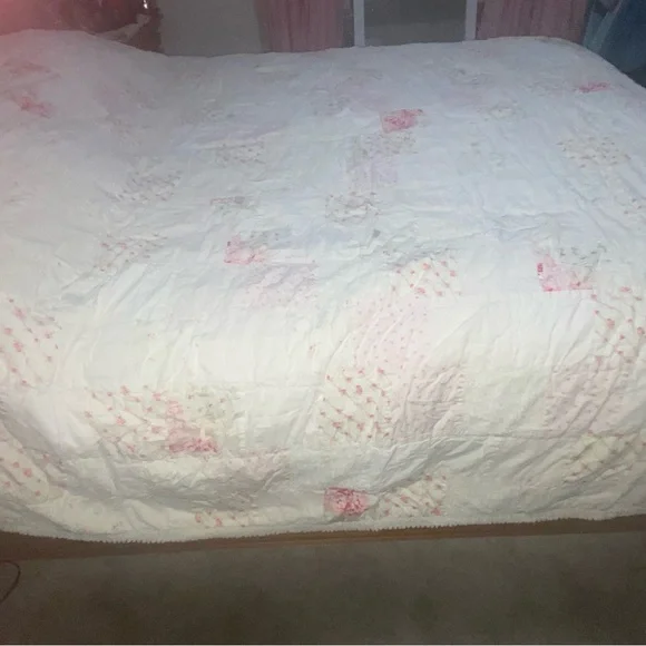 Add a touch of elegance to your bedroom with this beautiful floral patchwork quilt. Featuring a charming pink and white design, this quilt is perfect for creating a cozy and inviting atmosphere. Simply Shabby Chic Quilt it’s Vintage & very hard to find. This has been used but it’s still in great condition