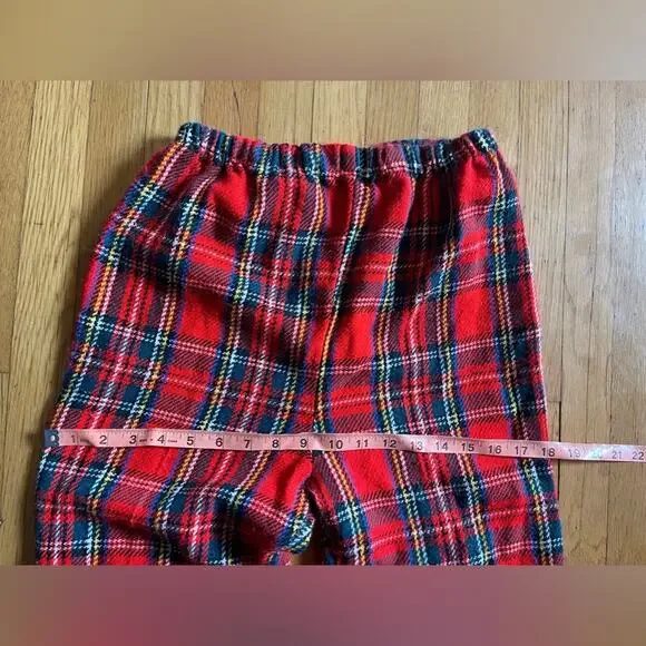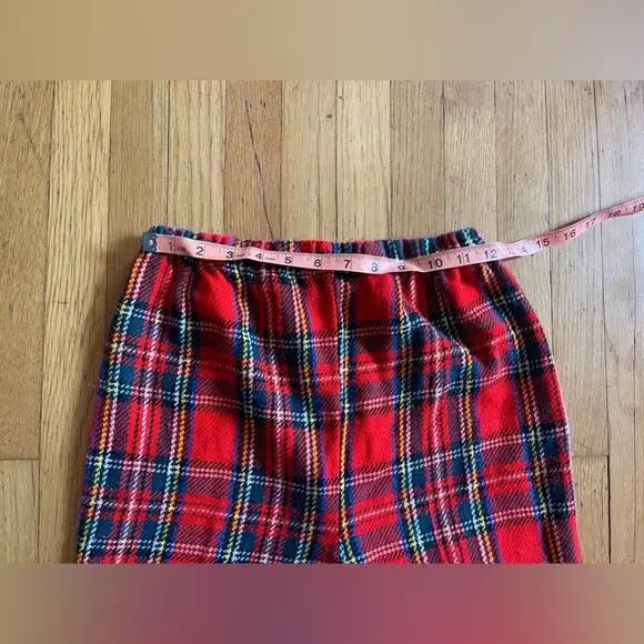 These pants are a mod dream. Made in the late 60s early 70s, they are a pull on style cropped high waisted pant in a red plaid! The pants are a soft flannel style made of a synthetic fabric.Overall in good vintage condition with some minor piling. Has no size tag - see measurements in photos. Approx a small to medium. Waist measurements are flexible as there is an elastic waist.Preppy vibes!