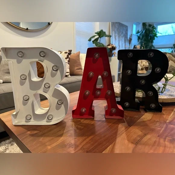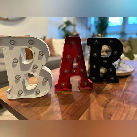 Metal Marquee Red/Black/White LED Light Letters BAR
