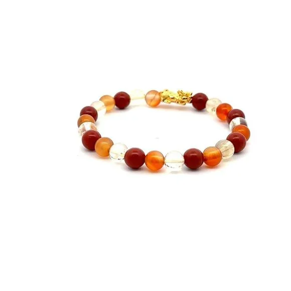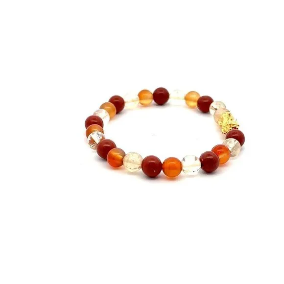 Please message us for any size request. Stretchable bracelet. Zodiac Aries Bracelet.*Pictures are enlarged to show the details of the product. Items appear larger than the actual in the pictures. Please always refer to the dimensions for the actual size of the product.* Please take note of the measurements and weights. Please ask if you have any questions before paying.All weights and measures are approximate.Weight: Gold Charm 0.10-.15 grams. Gold Charm -approximate length 12.6mm x width 6mm.Very lightweight, delicate, dainty/small. Not gold filled and not gold plated. Gemstones: approximately 6mm.Material : 18K Gold Charm/Natural Gemstones- Red Jasper, Citrine, and Carnelian.Due to natural properties, gemstones may vary in shape, color/shade, and size.STAMPED: No stamp for 18K gold that are less than 1 gram, due to it's fragile nature plus it's hollow. It's purity makes it very soft, pliable, and prone to damage therefore need extra care .Item #: 2330Shipping Details: All orders are shipped within one business day excluding holidays. Thank you for shopping with us!