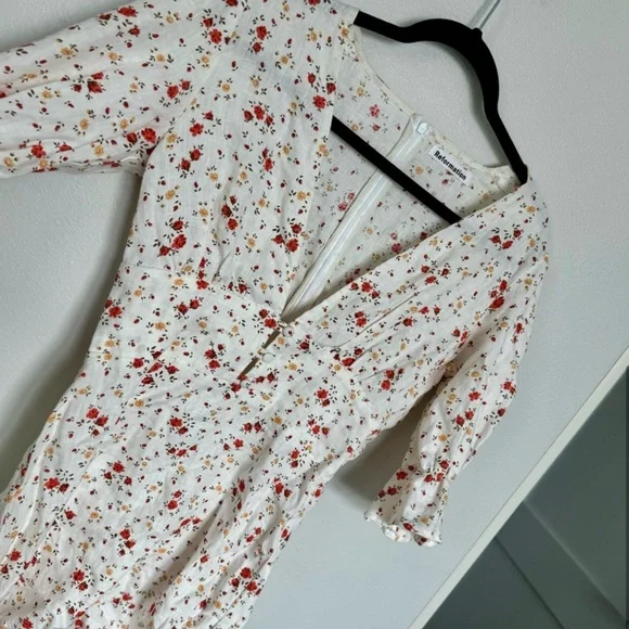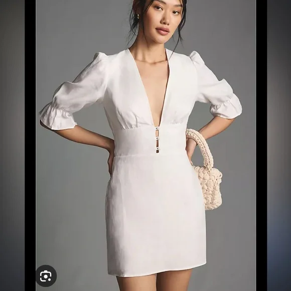 Brand new without tags reformation “simi “ dress. 100% linen, size 6! has a slim fit in the bodice to give you a little more shape in places you might want that. This dress has a slightly fitted skirt, and puff sleeves for a more dramatic look.No holes or stainsSmoke free homeNo trades Bundle for an additional discount!