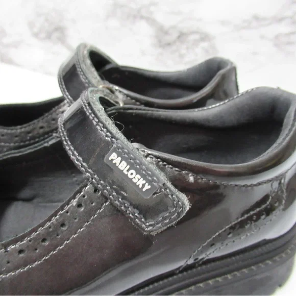 Pablosky Patent Leather Mary Jane Shoes Girls Size 34USA Size 3Gray Strap closureSchool Girl ShoesMade in SpainClean | wiped down and sanitized in great pre owned condition with minimal signs of wear Reasonable offers welcome Please see all pictures, video and measurements as they are part of the description Casual, Everyday wear, comfortable, unique, school, back to school, Spring, Summer, Fall, Winter, play, fun, Cute, preppy, Classic, Retro, Vintage, 90’s, Y2K, 2000’s, Trendy, on Trend, Flattering, Academia