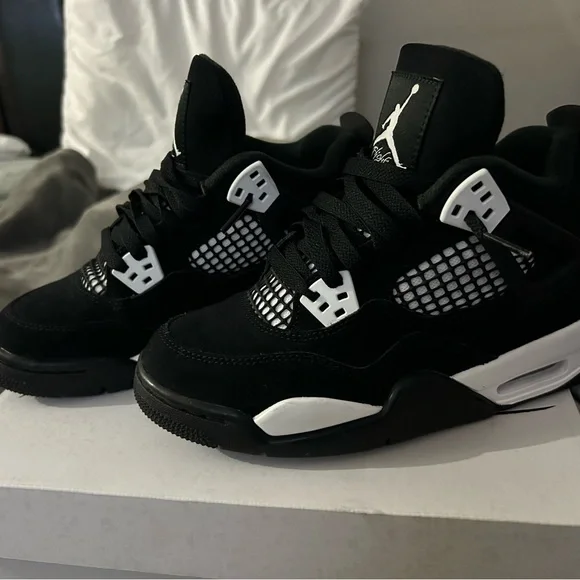 Experience the iconic style of Jordan with these black and white sneakers, featuring a premium nubuck upper and a visible Air unit for enhanced comfort. The classic design is complemented by white accents and the signature Jumpman logo, making them a versatile choice for any occasion.New only worn once trying to sell them, don’t want them anymore