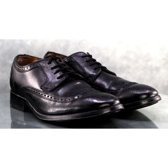 We ship fast, same day or next day. We usually ship on Saturdays also!Get your items fast!Tag Size: Men's Size US 10 MColor: BlackDescription:Leather upperSynthetic soleRound toeLaec-up closureLeather liningWingtip and brogue detailingCondition:Very good condition. May have minor marks as seen in pictures. Plenty of life on uppers and soles. See detailed photos.Inv # 2664 12-21-23