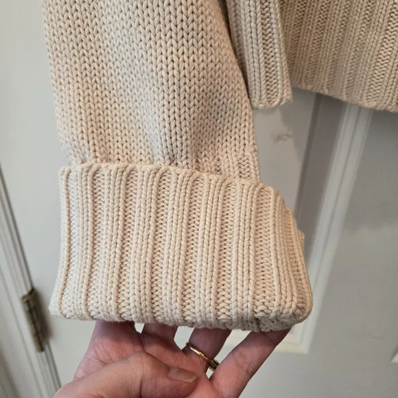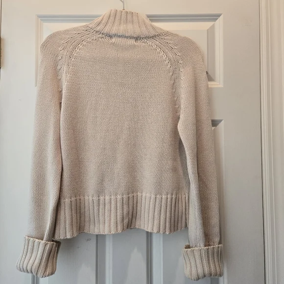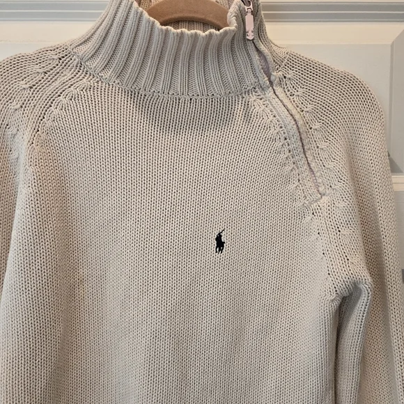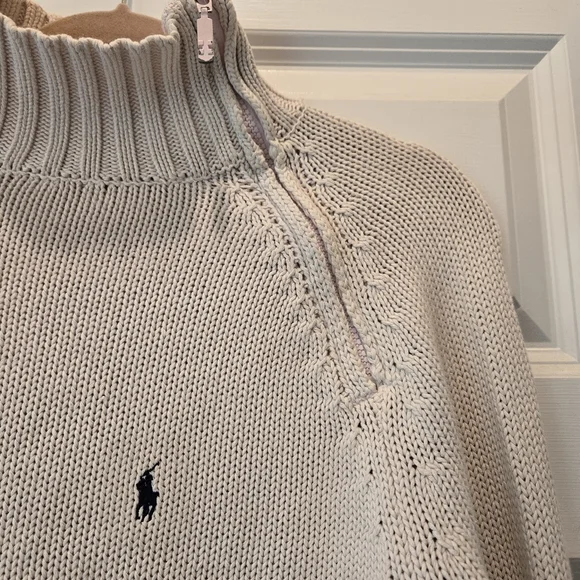 Cozy up in classic Ralph Lauren style with this timeless cream knit sweater. Featuring a chunky ribbed turtleneck with a quarter-zip detail, this pullover adds effortless elegance to any casual look. The signature black polo logo is embroidered on the chest for that iconic Ralph Lauren finish. Thick ribbed hem and cuffs (can be worn folded or unfolded) offer warmth and structure. Perfect for layering in chilly weather!Details:Brand: Ralph LaurenSize: MediumColor: Cream / Light BeigeStyle: Quarter Zip PulloverMaterial: 100% CottonCondition: Gently used, excellent condition, no flawsFeatures: Ribbed turtleneck, hem & cuffs, logo embroidery, soft knit textureMeasurements: 18" pit to pit, 22 1/2" length,24 1/2"-28 1/2" sleeve length (cuffed and uncuffed)Pairs beautifully with jeans, leggings, or a mini skirt and boots for a preppy-chic fall or winter look. Great for casual outings, school, weekend brunch, or holiday gatherings.Ralph Lauren Sweater, Polo Sweater, Cream Knit, Turtleneck Pullover, Preppy Style, Classic Fit, Winter Essentials, Cozy Knitwear, Logo Sweater, Neutral Sweater, Y2K Polo, Designer Knit, Cold Weather StyleBundle items to save!S13