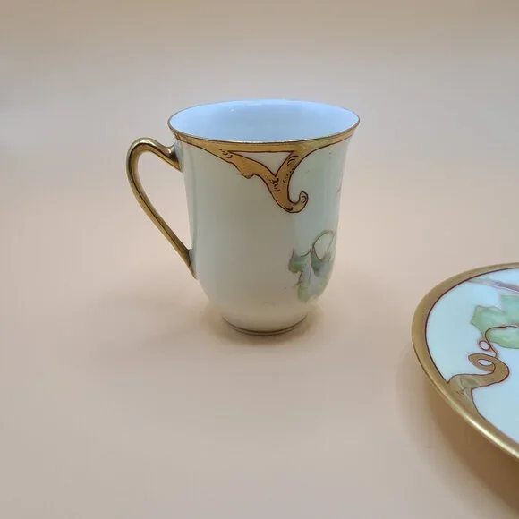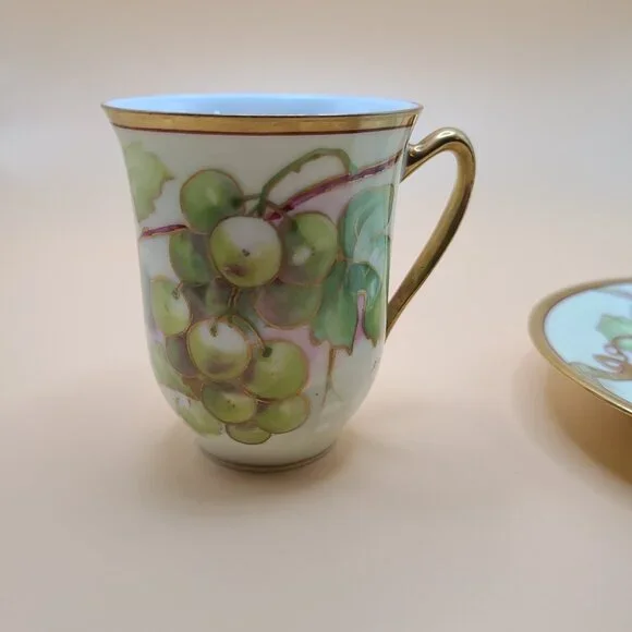 A. Lanternier & Cie Limoges France1890Rare pattern Demitasse cup and saucerHand painted and signed on cup - DuvalMaker stamp on the underside of saucerCup is 3" tallSaucer 5" diameterAmazing condition - paint still looks great!Thank you for stopping by My Closet. Please feel free to send me an offer.same/next day shipping
