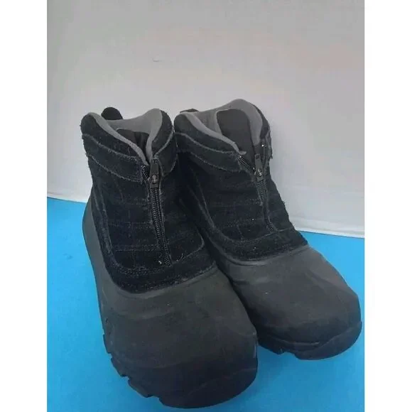 Stay warm and dry with these rugged winter boots featuring waterproof construction and durable rubber soles. Perfect for winter walks, snow days, and outdoor activities. The convenient side zipper allows easy on/off while the insulated lining keeps feet cozy in cold conditions. The sturdy grip pattern on the soles provides excellent traction on slippery surfaces. Ideal for winter commuting, casual hiking, or running everyday errands in challenging weather.Keywords: winter boots, snow boots, waterproof boots, insulated boots, hiking boots, ankle boots, black boots, zip-up boots, outdoor footwear, winter shoes, cold weather boots, non-slip boots