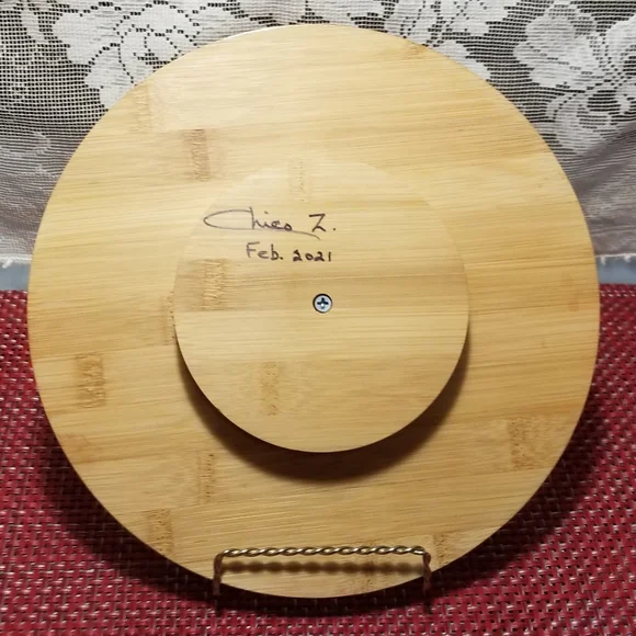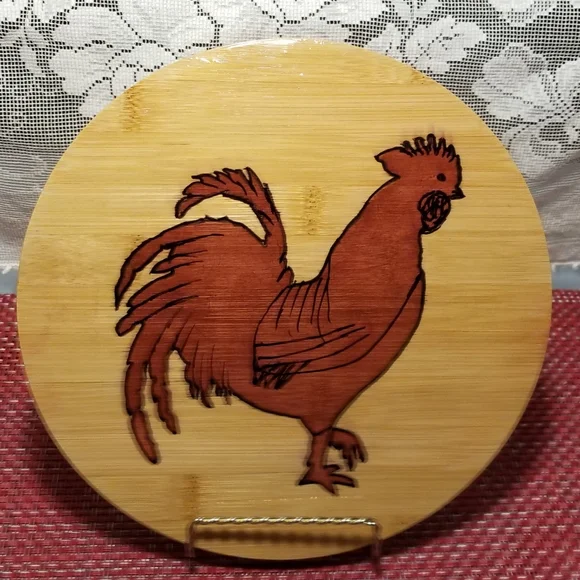 Wooden Lazy Susan featuring a "Rooster"*Wooden Lazy Susan featuring a "Rooster"*RoosterDimensions:10" x 10"1.25" in heightThis listing features a Wooden Lazy Susan featuring a "Rooster". Would look great in a country kitchen and it would certainly make a nice gift for anyone collecting rooster motif's.Condition:NEWPLEASE ZOOM IN ON ALL PHOTOSTHANK YOU FOR VIEWING MY HANDCRAFTED ITEMS!BOX 1978