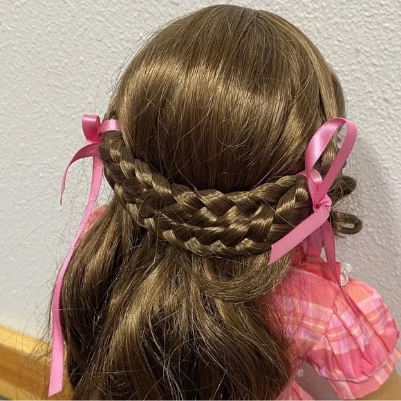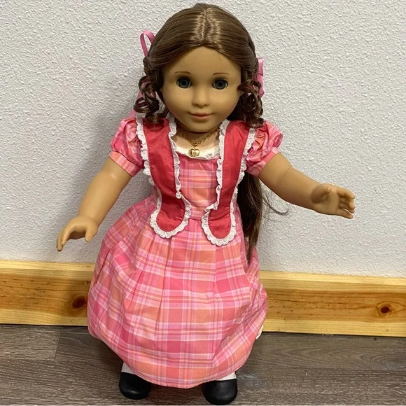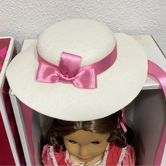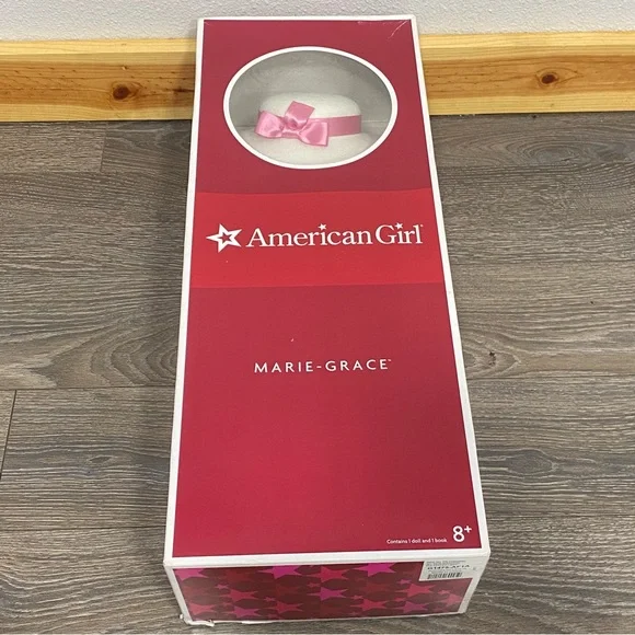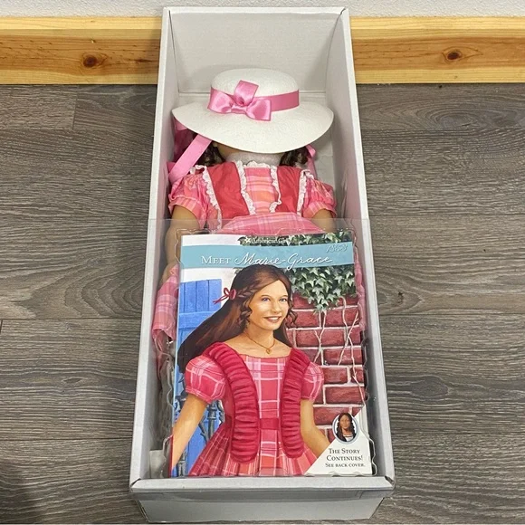 Retired American Girl doll Marie-Grace in her original box with her book. The doll is wearing her complete welcome outfit in addition to the crinoline and chemise from the Marie-Grace and Cecile collection. Marie-Grace’s welcome accessories are also included in the box as well as Marie-Grace’s nightgown (no slippers). Everything in this set is in excellent condition. This doll set was adult owned and only very briefly displayed before being put into storage and the doll still has her original hairstyle. See pictures for details.