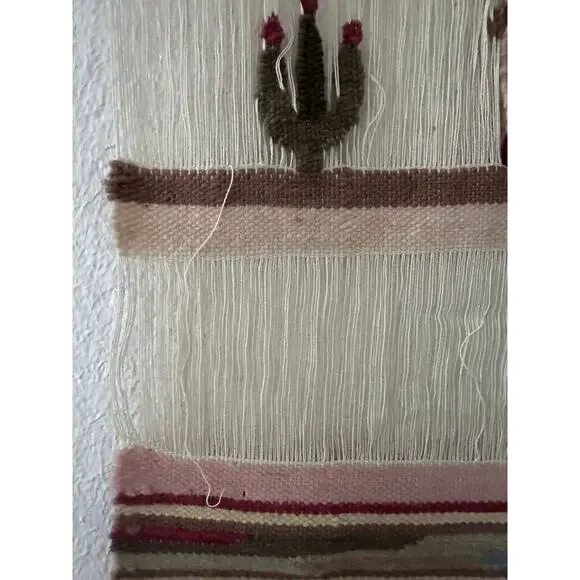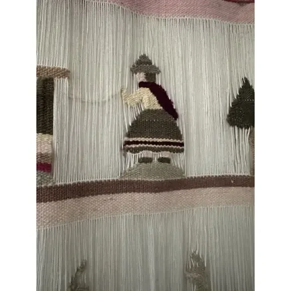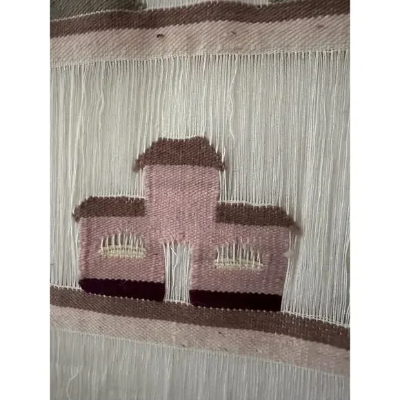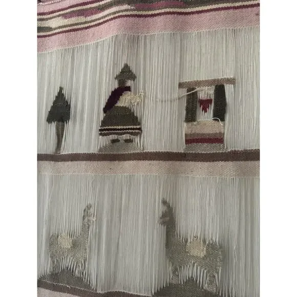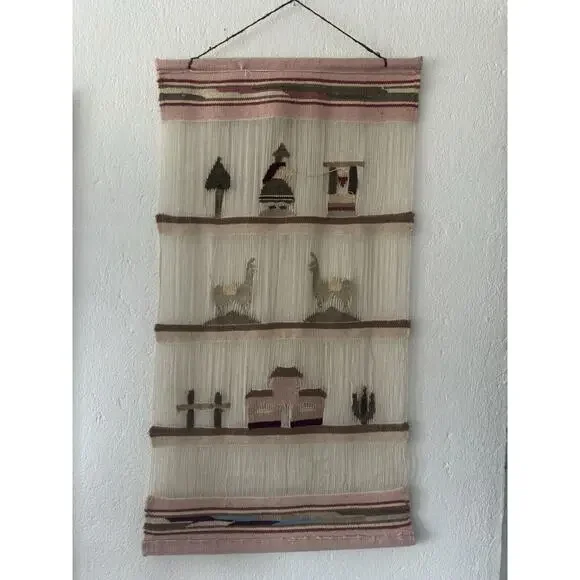 Vintage Vertical Wool Hanging Tapestry - South American - CountrysideCondition: some minor unthreading - wool thread to hang is slightly beaten up - and some spots on the tops and bottoms of tapestry.Dimensions: 18" x 35"Disclaimer: All items in this shop are used and in used condition, unless otherwise noted. When purchasing a used item, the buyer agrees that they have read and understood that used items are not in new or mint condition. They are being sold and purchased “AS IS.” It may have stains, missing pages, or parts, folded or ripped pages, scratches or dents, or direct show wear and tear due to them being used and vintage or just because it’s old. Please zoom in and examine carefully. If you are unsure about an item, please ask. I will happily answer all questions to the best of my ability. THANKS FOR LOOKING.