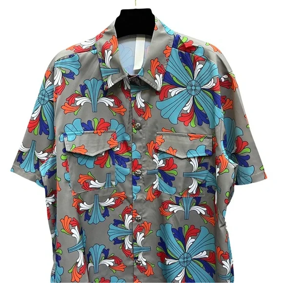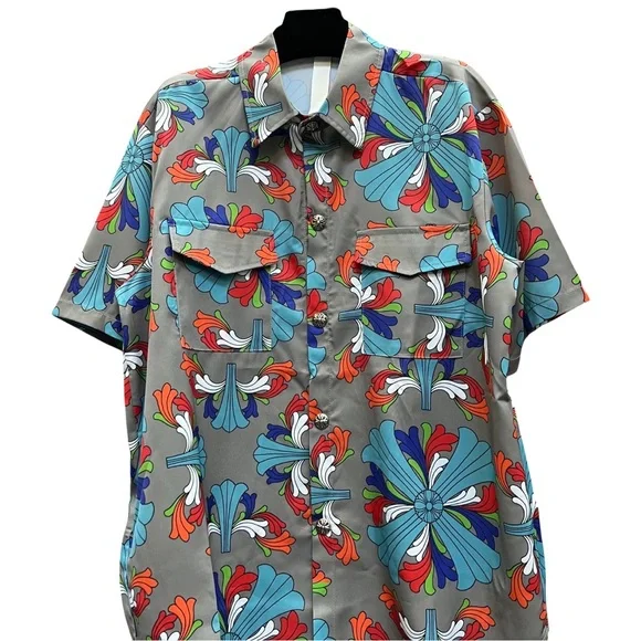 Crafted from premium cotton, this Chrome Hearts shirt features the brand's signature cross embroidery and subtle distressed details. The relaxed L-size fit ensures effortless style with an edge.100% soft cottonEmbroidered logo & silver hardwareOversized silhouette (Chest: 46.5")Wear it loud. Wear it proud. 🖤
