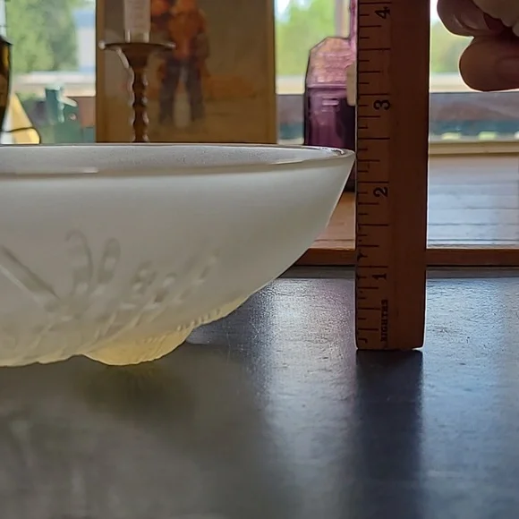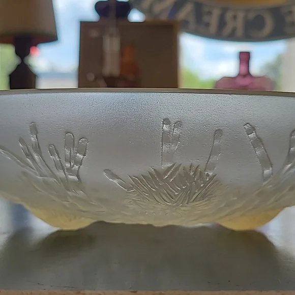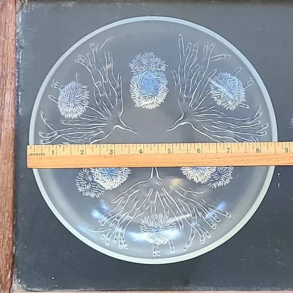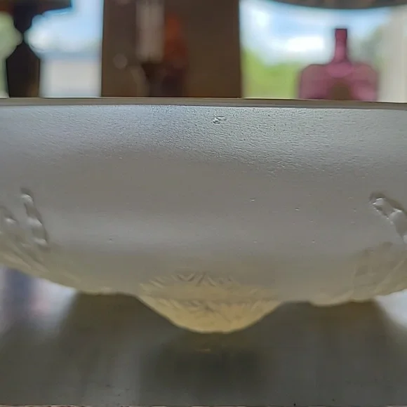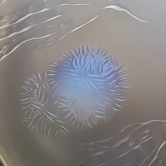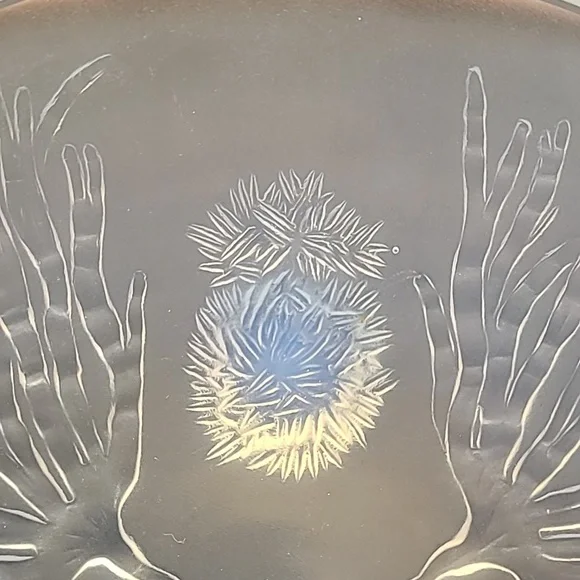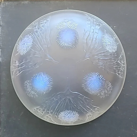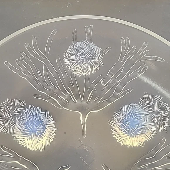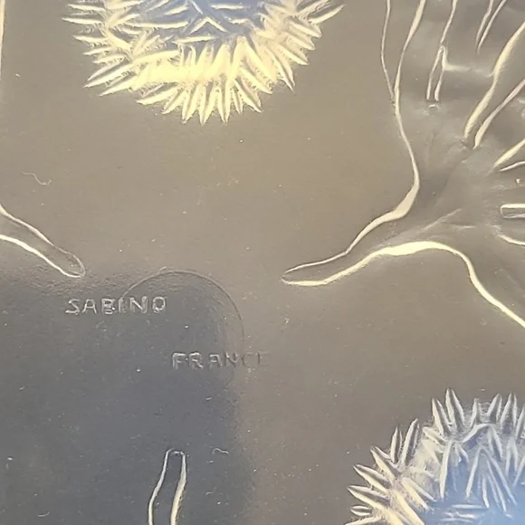 This piece of Sabino glass is in near-perfect condition. It features sea urchins that are glazed in an opalescent blue. Sabino France can be seen at the center of the bowl. I think there is one small scratch, but I'm not sure if it is an actual scratch or a manufacturing flaw. I'm leaning toward manufacturing flaw, but I wanted to point it out just in case. Please see the final photo for the scratch. See photos for measurements as well.Vintage. Glass. Opalescent. Sea Urchin. Aquatic. Sea Life. Blue. Footed Bowl. Bowl. Ocean. Sabino. France.