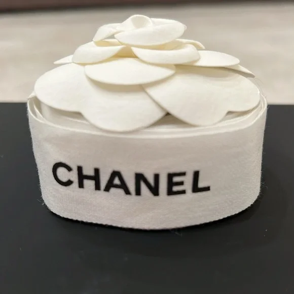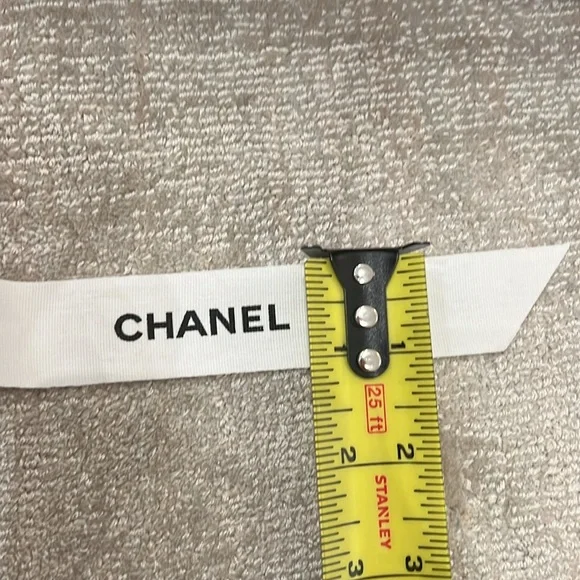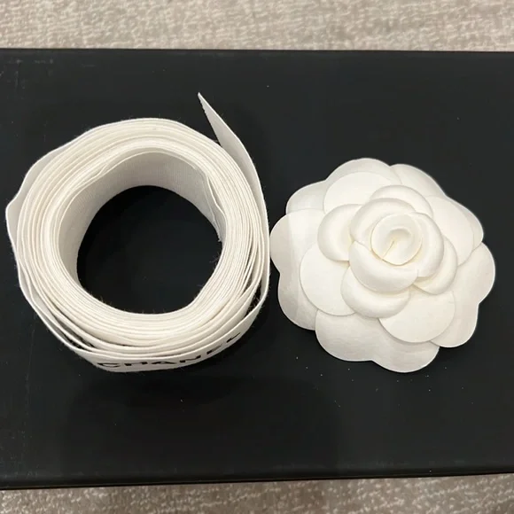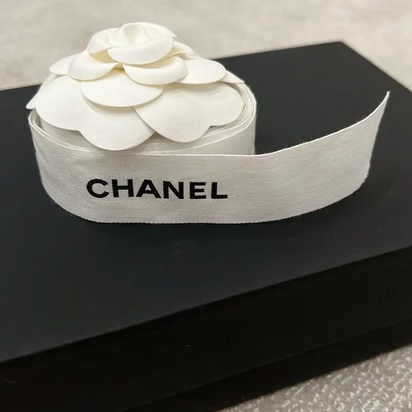 Excellent ConditionApproximately 125 inches long Very long ribbon can be cut if needed No stain No flaws Authentic Ribbon and Flower *box not included*Tags: gifts, wrapping, expensive, Chanel, travel, vacation, anniversary, birthdays, wedding, boxes, hair accessories, wallets, bags, clothing, designer,