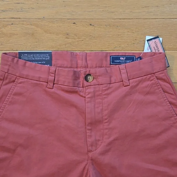 Experience the perfect blend of style and comfort with these Vineyard Vines red flat front shorts. Crafted from high-quality materials, they offer a smooth texture and a classic fit, ideal for casual summer outings. The vibrant red color adds a touch of sophistication to your wardrobe.●NWT ●Brand: Vineyard Vines Classic Fit Shorts●Size: Mens 28x9"●Size Type: Regular ●Fit: Classic●Closure: Button and zipper●Accents: Logo, button,and zipper●Mid- Rise●Pocket Type: Slash●Features: Stretch,easy-care,and pockets ●Pattern: Solid●Material: 94% Cotton and 6& Elastane ●Machine Washable