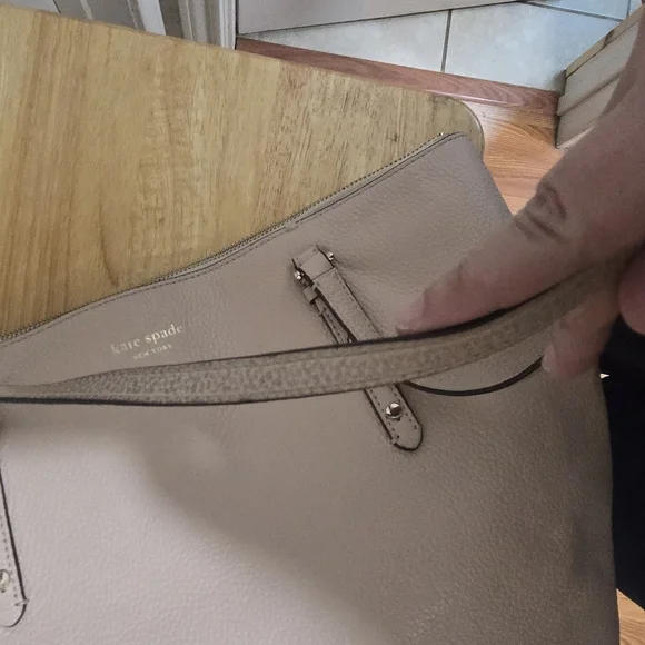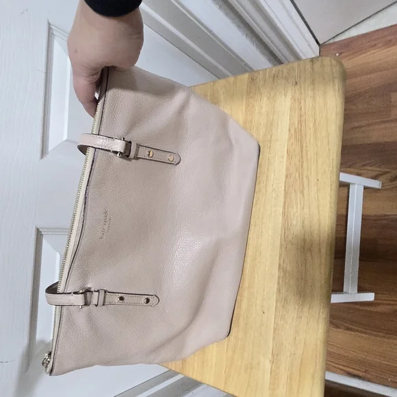 Kate Spade Pink Tote Bag with Textured Leatherthe straps bottom and lining are stained there is wear and tear more pics available upon request length is 10.5in width is 15in This Kate Spade tote bag features a beautiful pink color and is crafted from textured leather for a stylish look. It has a trapezoidal shape and comes with thin adjustable shoulder straps, making it perfect for everyday use.