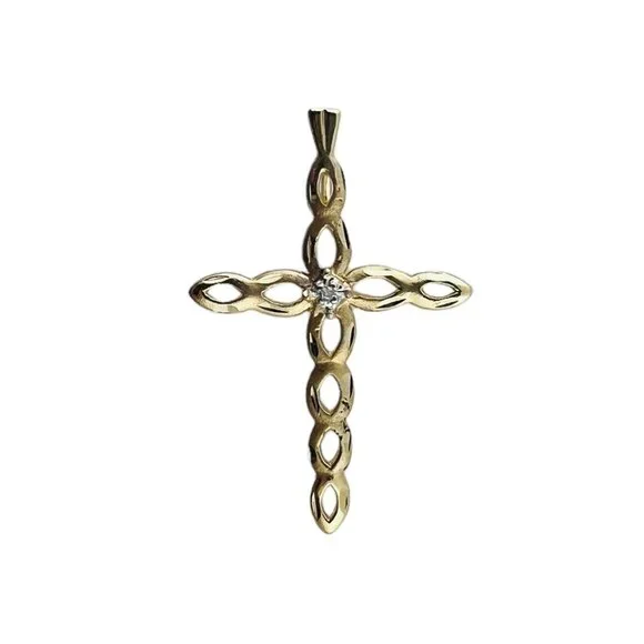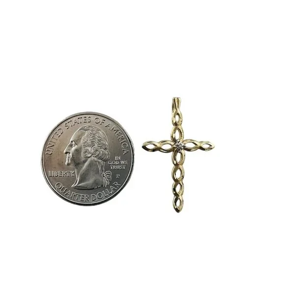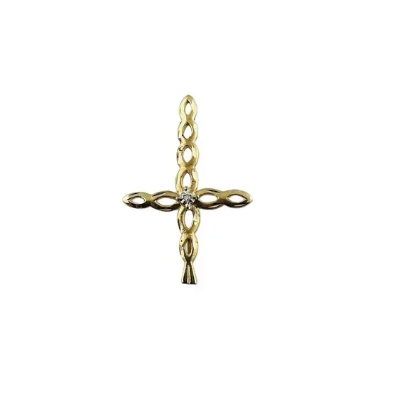 18K Yellow Gold Diamond Cross PendantThis cross pendant is set in 18K yellow gold with a single cut diamond in its centerThe diamond is approx. .005cts and SI1 clarity, H colorPendant measures approx. 29.2 mm x 19.1 mm x 1.0 mm0.8 grams / 0.5 dwtStamped 18K*Does not come with chain*Very good preowned condition.Will be shipped priority mail with insurance in a gift box.AL10152023/17KCSItem id: RL-00015547Color: GoldStone: DiamondItem type: VintageMaterial: Gold, 18K Gold, Yellow Gold