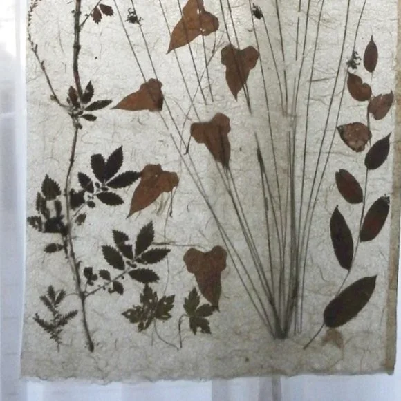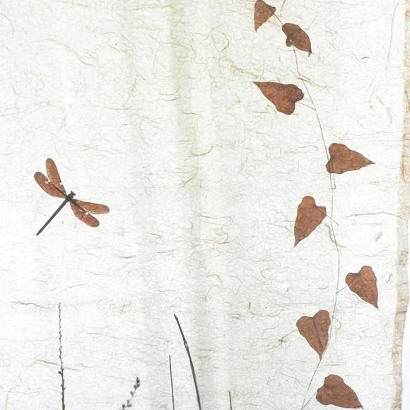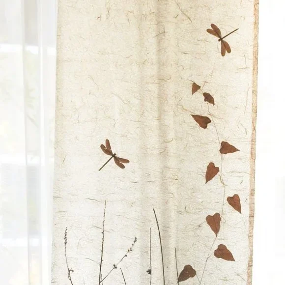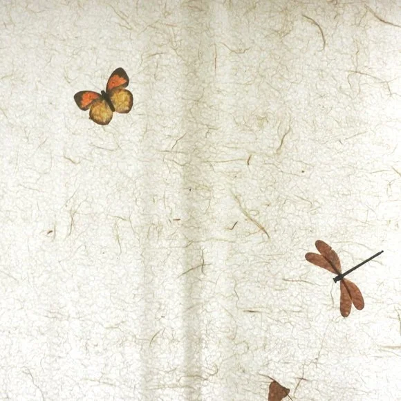 Vintage washi paper shoji panel with real pressed plants and butterflies of Japan from last century. Hand made in Japan in 1960s. Good vintage condition with some wrinkles, yellowing, paper thinning near plants. No smells. Approx. 19"X73". Great for a design project (glass door screen, window or french door shades, lamp screen, wall dressing, etc.).