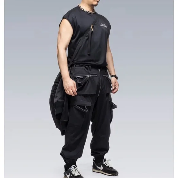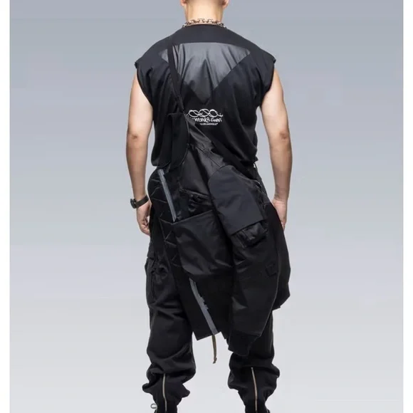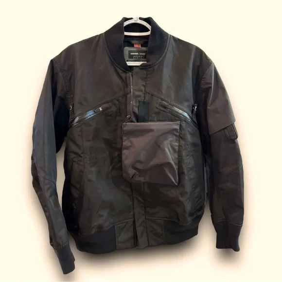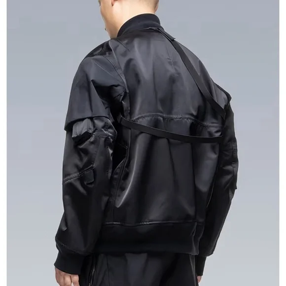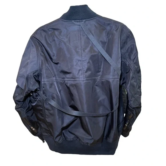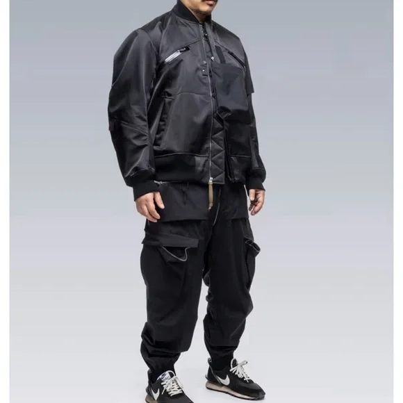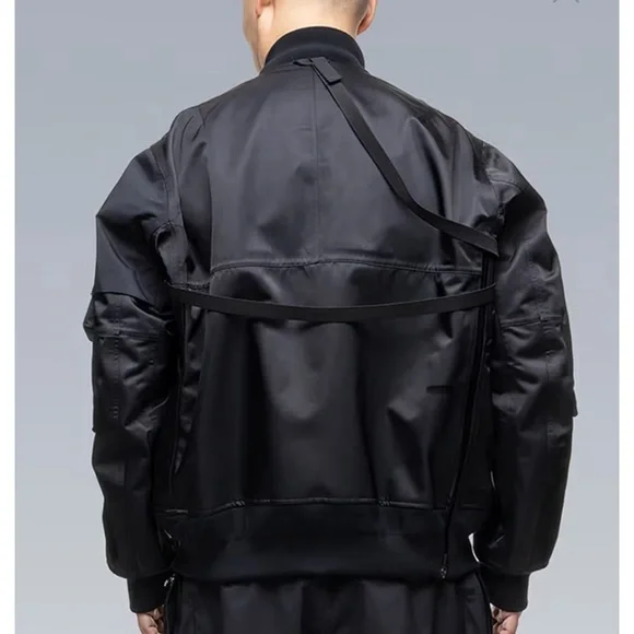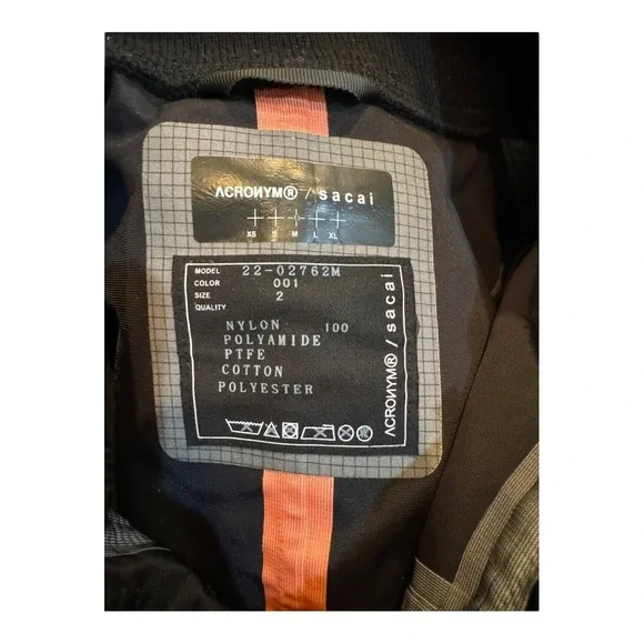 This is the highly sought after Acronym + Sacai collaboration for the SS22 collection in black. The Acronym designer brand is known for their utilitarian, futuristic, tech looks often labeled as “cyberpunk.” This unique blend of qualities has attracted the likes of many celebrities such as John Mayer, A$AP Rocky, Henry Golding,and Jason Statham. Acronym has even created tech wardrobe pieces for Hobbs & Shaw.Sacai, a Japanese luxury designer has adorned the runways since 1999 and is known for its dichotomy of casual and formal fashion. Sacai is now known as a cult fashion streetwear label and has since done many collaborations with other designers such as Nike, Ugg, Vans and Birkenstock, to name a few. It was only natural that Sacai did a collaboration combining Japanese street wear with the futuristic utilitarian designs of Acronym.This bomber jacket has many hidden pockets as well as zippers. Waterproof. Size MediumIt is in EXCELLENT CONDITION!No, there are no receipts.Yes it is authentic and will also be verified onAuthentication.My husband received this two years ago and has bulked up since then and it no longer fits him.