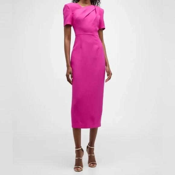 Step out in style with this stunning Roland Mouret pink cady wool and silk dress. Perfect for any occasion, this dress offers a flattering fit and a vibrant color that stands out. UK6 (US2) but runs small. Hemmed to 40 inches in length. 73% wool, 27% silk; lining: 100% polyester. Bought brand new and worn once and dry cleaned. Practically new.