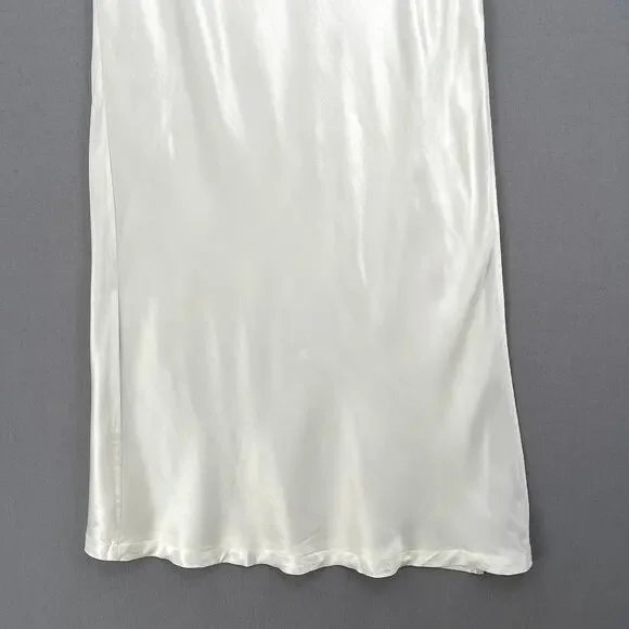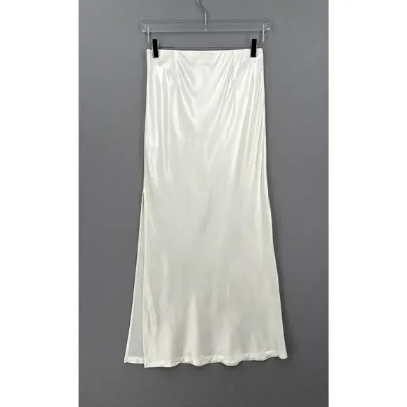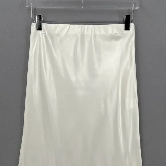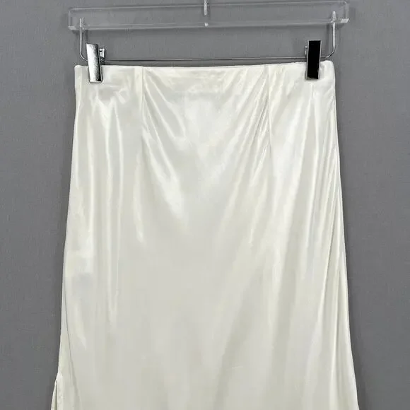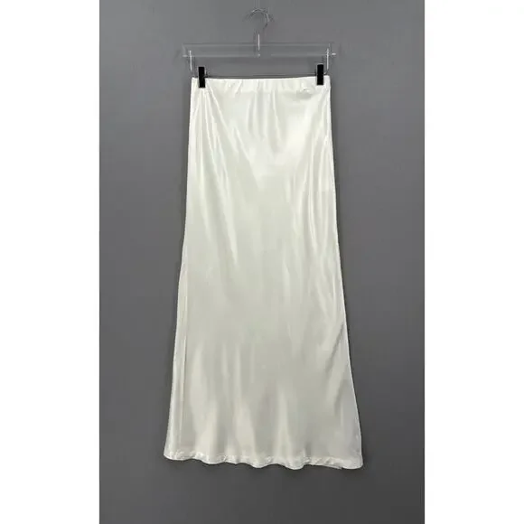 ENZA COSTA Satin Bias Cut Slip Maxi Skirt Womens Medium White Cloud Pull On NEWFlat Elastic waistPull on designHigh side slitBias cut fabricEnza Costa size 2 = MediumOrig Ret $225CONDITION: New without tags, no flaws notedCOLOR: Off whiteMATERIAL: 100% rayonWaist 13.5"Hip 16.5"Length 38.25"Slit 22.75"- All measurements are taken flat across one side(unless otherwise noted), please double to get the measurement all the way around- Measurements are approximate, please review prior to purchase to help ensure proper fit- Color may vary with device and lighting- Please review all photos thoroughly- I'm happy to combine shipping for multiple items- All orders are shipped within 24hrs, most shipped same or next business day- Feel free to ask questions