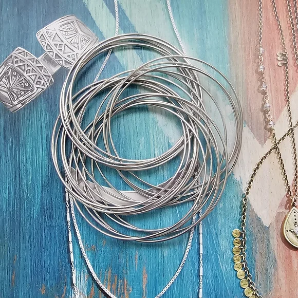 One of Silpada's most popular and iconic items; these never go out of style and you can wear them with anything! Retired design.⭐️This set is the SMALL size, which is very rare to find. It is perfect for smaller wrists; in excellent condition!⭐️- 21 interlocking bangles, all 925 sterling silver- single bangle is approx 2.5" in diameter; when wearing the set they are closer to 2.25" (see pics)*Ships in Silpada gift box*Please look at all non-stock photos as they are part of description. This is the item you will receive. Please ask all questions *before* purchasing.⭐️ 5-Star Trusted Seller ⭐️❤️ 100+ Love Notes/Reviews ❤️⚡️Fast Shipping within 24 hrs⚡️📷 Items photographed during shipment. Clean, N/S home. Actual colors may vary.