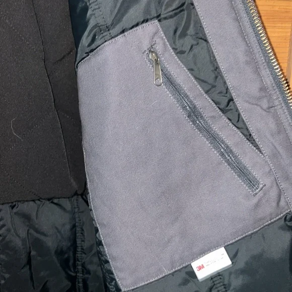 Men’s CARHARTT FULL SWING CRYDER is ready to tackle the toughest jobs, daily work or casual event!This water-resistant quick duck fabric is lightweight, has enhanced mobility, rugged flex (because it is made with thinsulate) and has instant recovery.Cuffed inner sleeve and adjustable draw cord bottom hem.Has snaps for a hood (not included).Jacket has fantastic storagetwo zippered chest pockets, two lower snap pockets and two interior pockets with one being zippered.This dark grey Carhartt is in like new condition and steam sanitized for your peace of mind!
