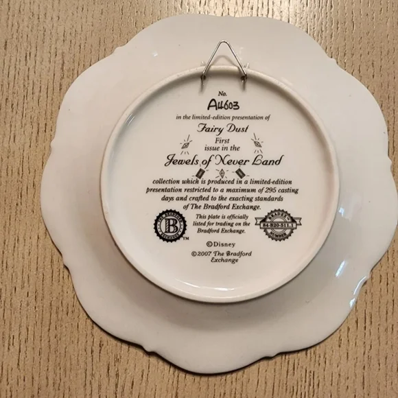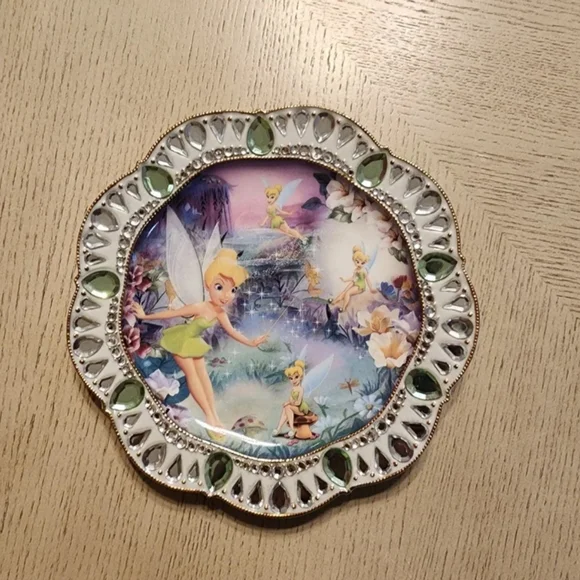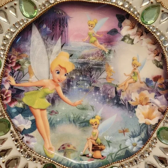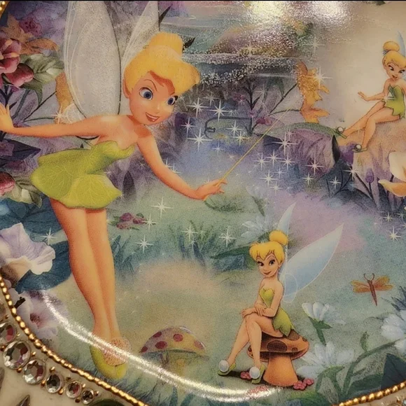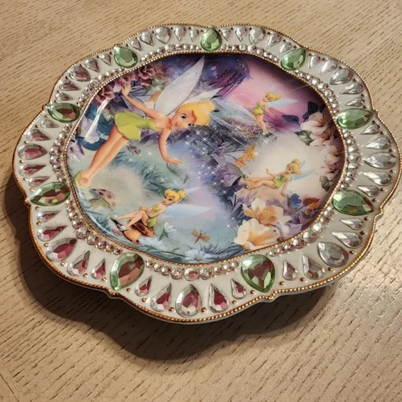 The Bradford Exchange Fairy Disney Tinker Bell Fairy Dust Collector PlateDisney Tinker Bell Fairy Dust Collector Plate: Collectible Tinker Bell Gift by The Bradford Exchange Bradford ExchangeThis plate'Fairy Dust' featuring TinkerBell is the 1st plate in Disney's"Jewels of Never Land" series. #A4603bring a touch of magical beauty into your home! Beginning with “Fairy Dust,” each edition in this beautiful collection is a must-have treasure with whimsical visions of Tinkerbell, glittering faux gems, and 22K gold banding. Approximate diameter, 7.5" (19 cm).