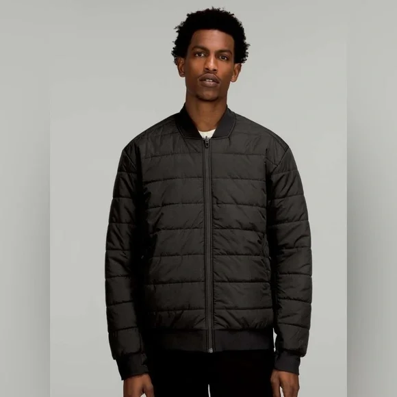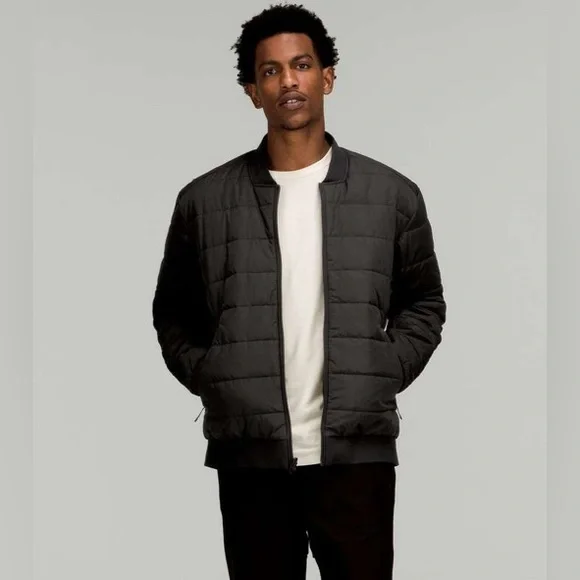 Retails $198 Hard to find men XXL! Lululemon Switch Over Bomber JacketBlack colorAdapt to changing plans in a flash. Switch your look on the go in this reversible bomber and you'll have light insulation and weather protection no matter which way you wear it.water-resistant fabric, mid warmthFabric on both sides is water-resistantPrimaLoft® insulation is warm, even when wetDesigned with zoned RDS Down and PrimaLoft® insulation to regulate body temperaturefeaturesZippered exterior pockets with a hidden phone sleeve