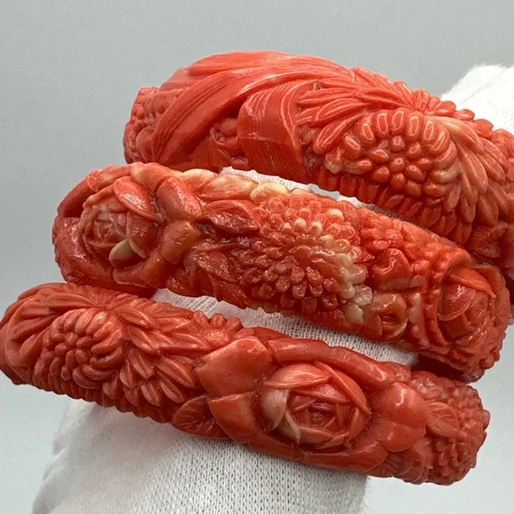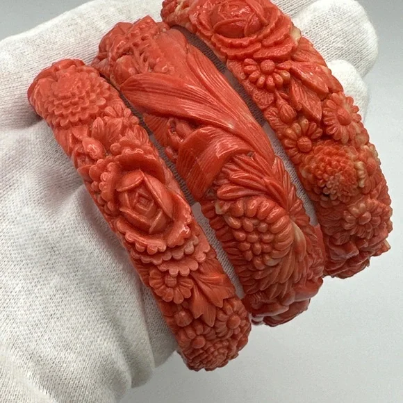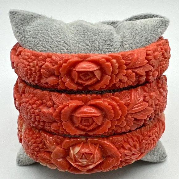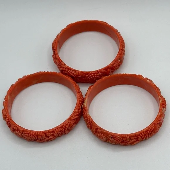 Vintage Japan 1920's Celluloid Faux Coral Bangles 3 pieces #215Products include used/washed/polished/refurbished/re-machined items, we take truthfully and clearly photos for details. This item is a pre-owned item, is sold "As-Is". We make every attempt to list the item as accurately as possible. By bidding on this item the buyer understands and accepts that items are as represented. Thank you for your purchase.