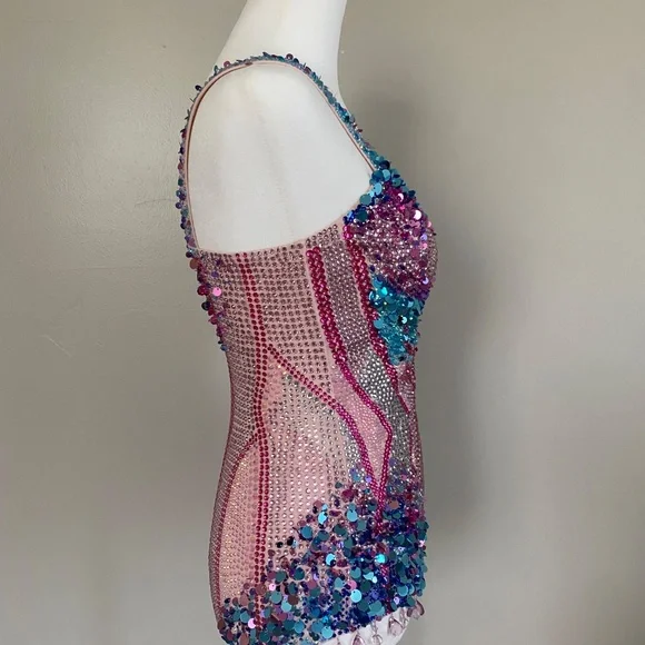 over 100 hours spent over 5 weeks recreating the lover bodysuit I am now ready to part ways with my masterpiece!l've never made an outfit before so please note this outfit is handmade.I wore the costume once to the Sydney eras tour and no longer see benefit for myself.I would love to see another fan love and enjoy the outfit as much as I did!Size: 0 or XS, there is stretch but minimal as the gemstones on the front are really close together.