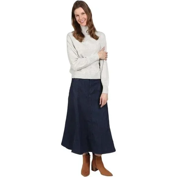 Women's Long Denim Skirt Blue Jean Skirts Midi Length
